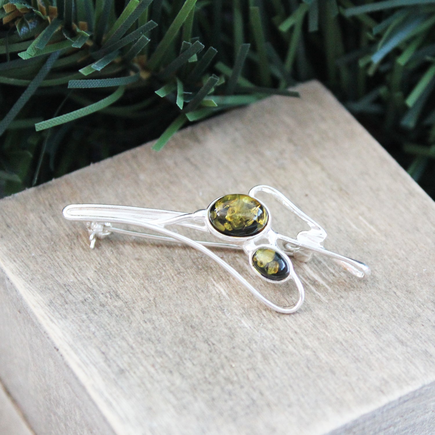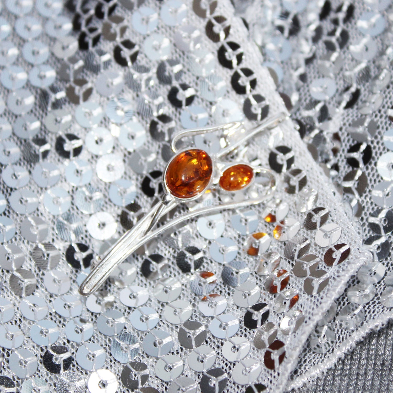 Elegant Baltic Amber Brooch hand crafted and set in sterling silver