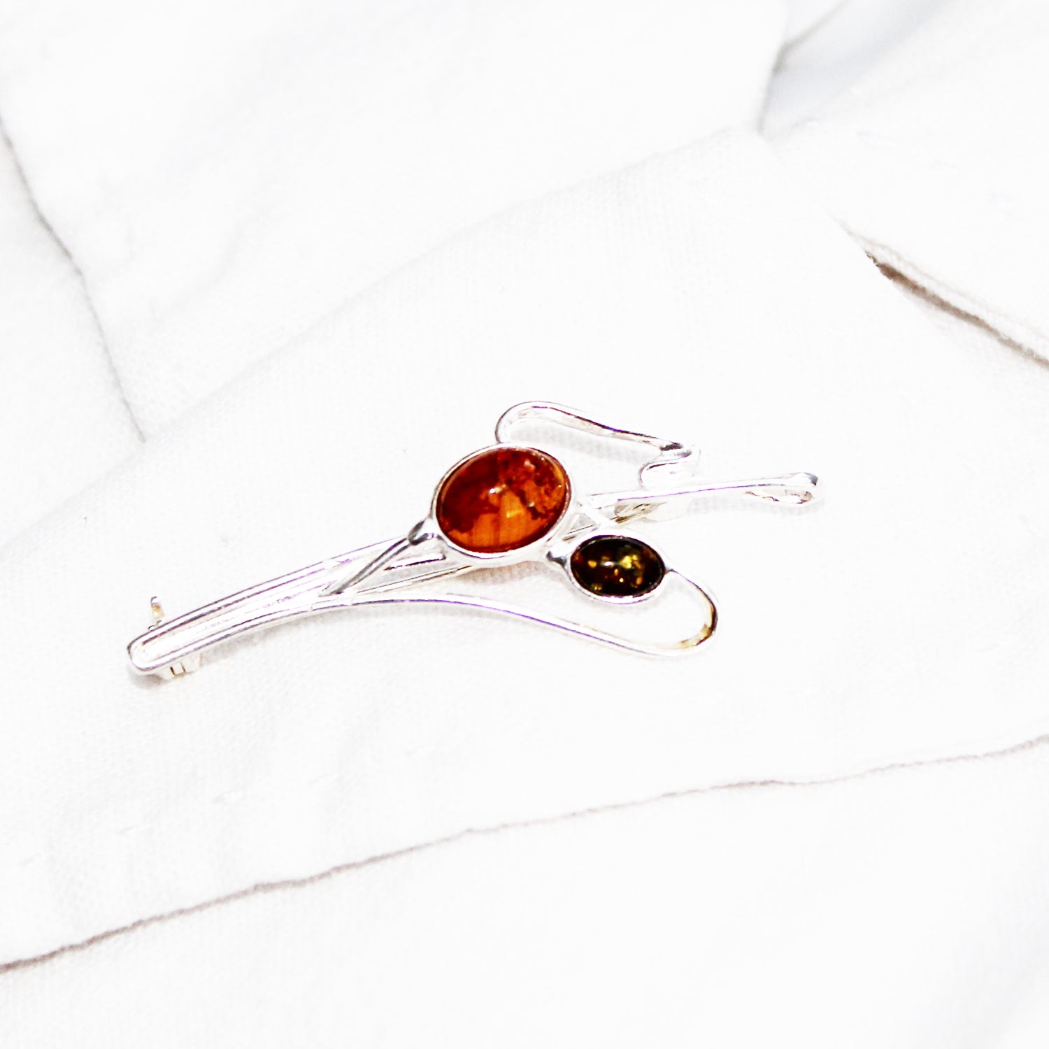 Elegant Baltic Amber Brooch hand crafted and set in sterling silver with a pin and secure safety clasp.