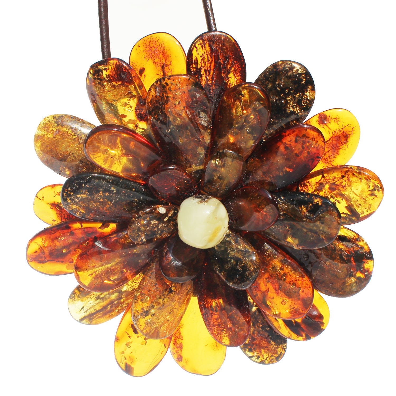 Impressive Baltic Amber Flower Pendant - Brooch