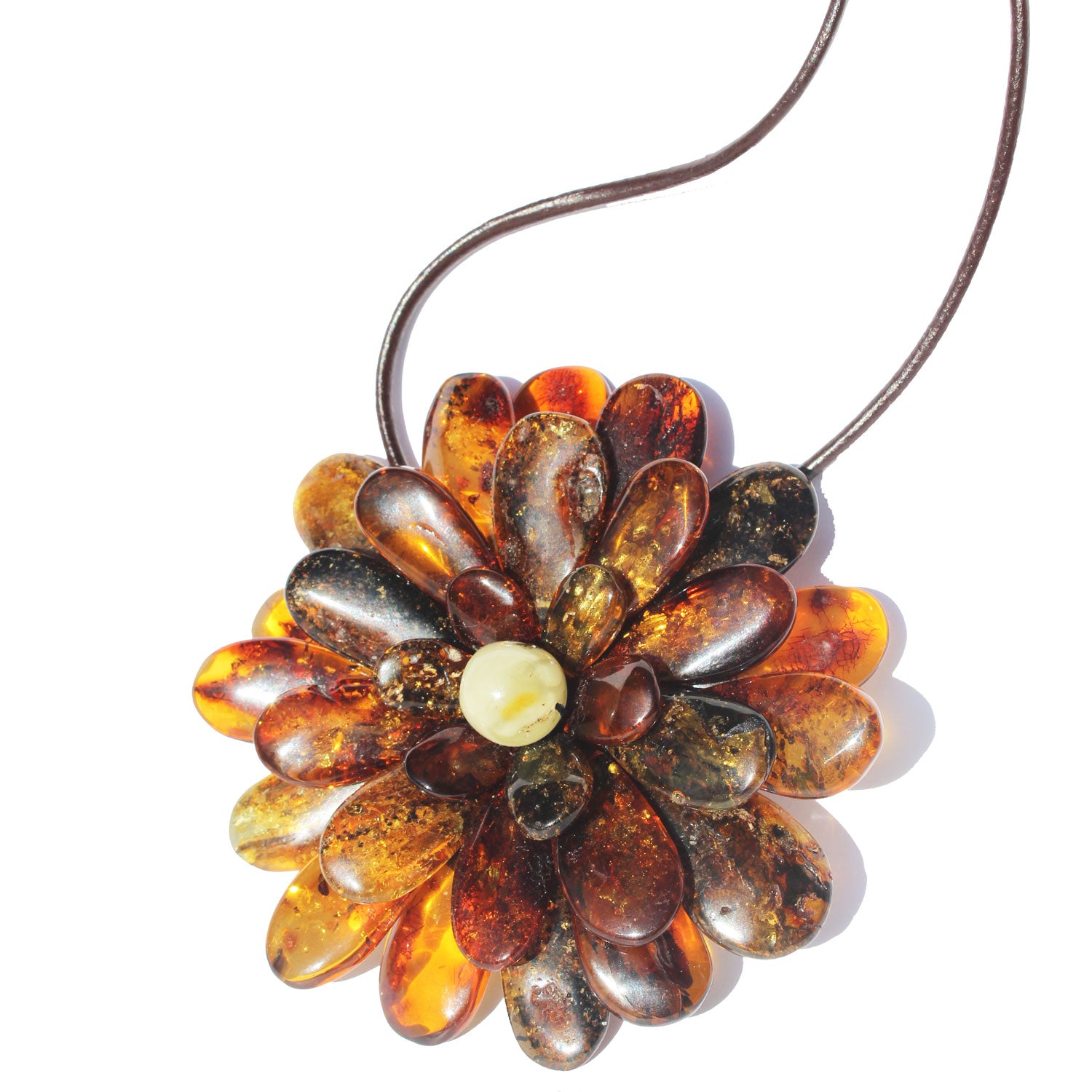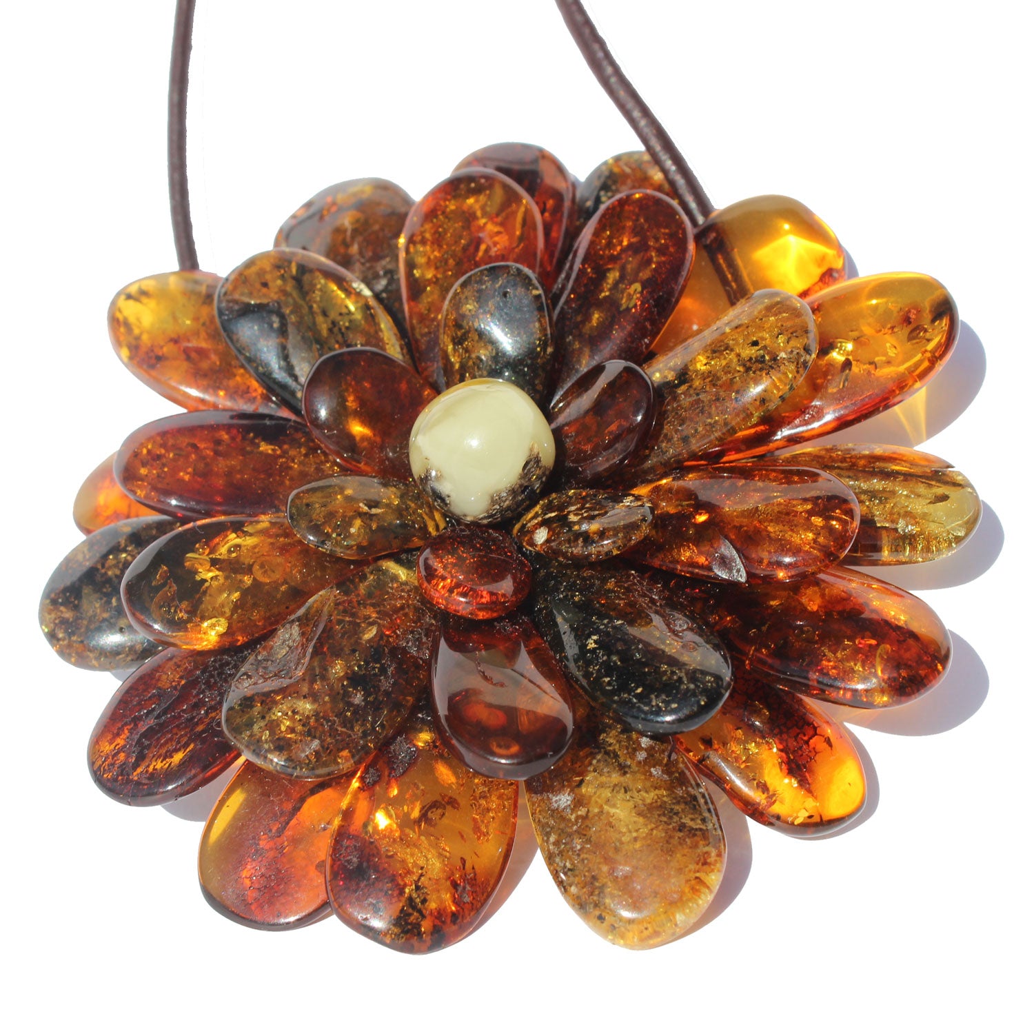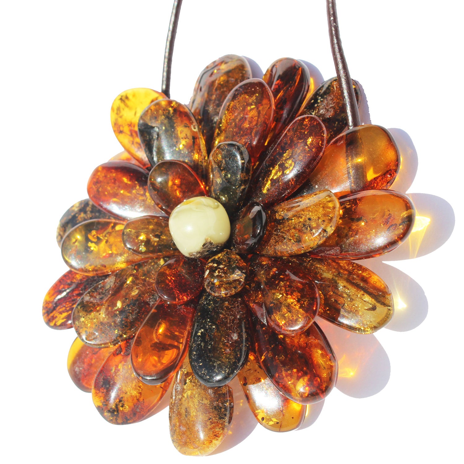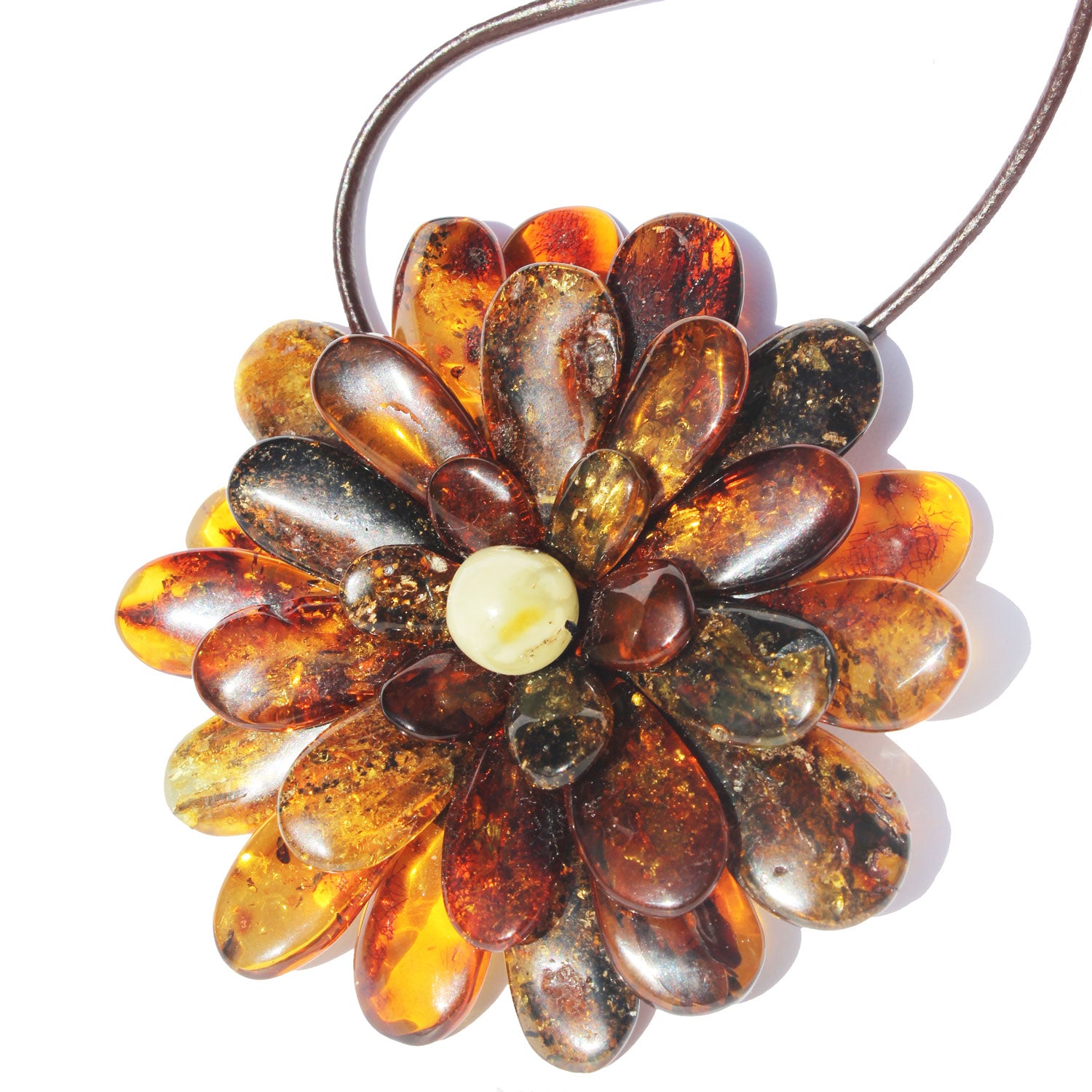 Impressive Baltic Amber Flower Pendant. Could be worn as a brooch or Necklace, gorgeous gift box