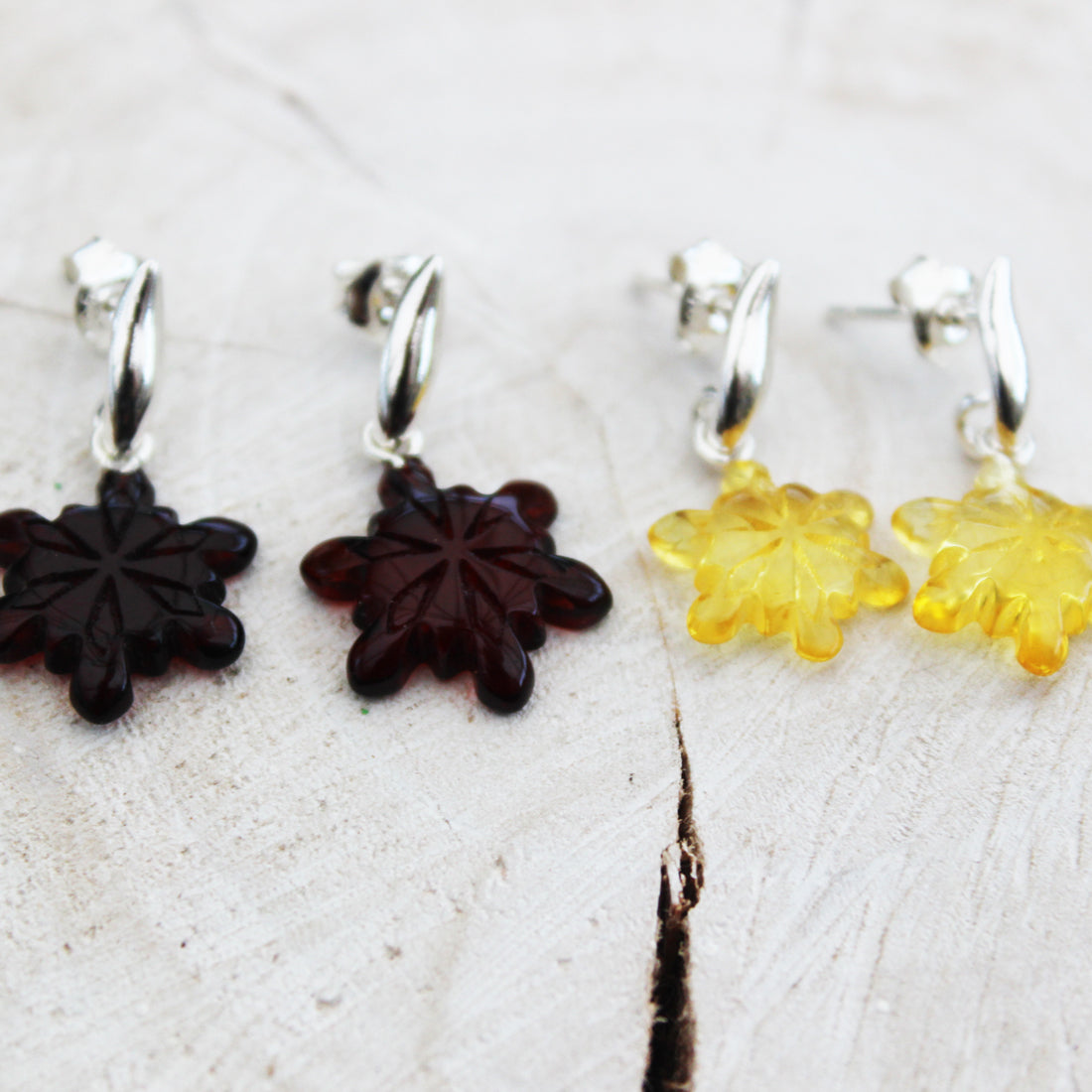 Creatively Hand-carved Baltic Amber Studs - Snowflakes