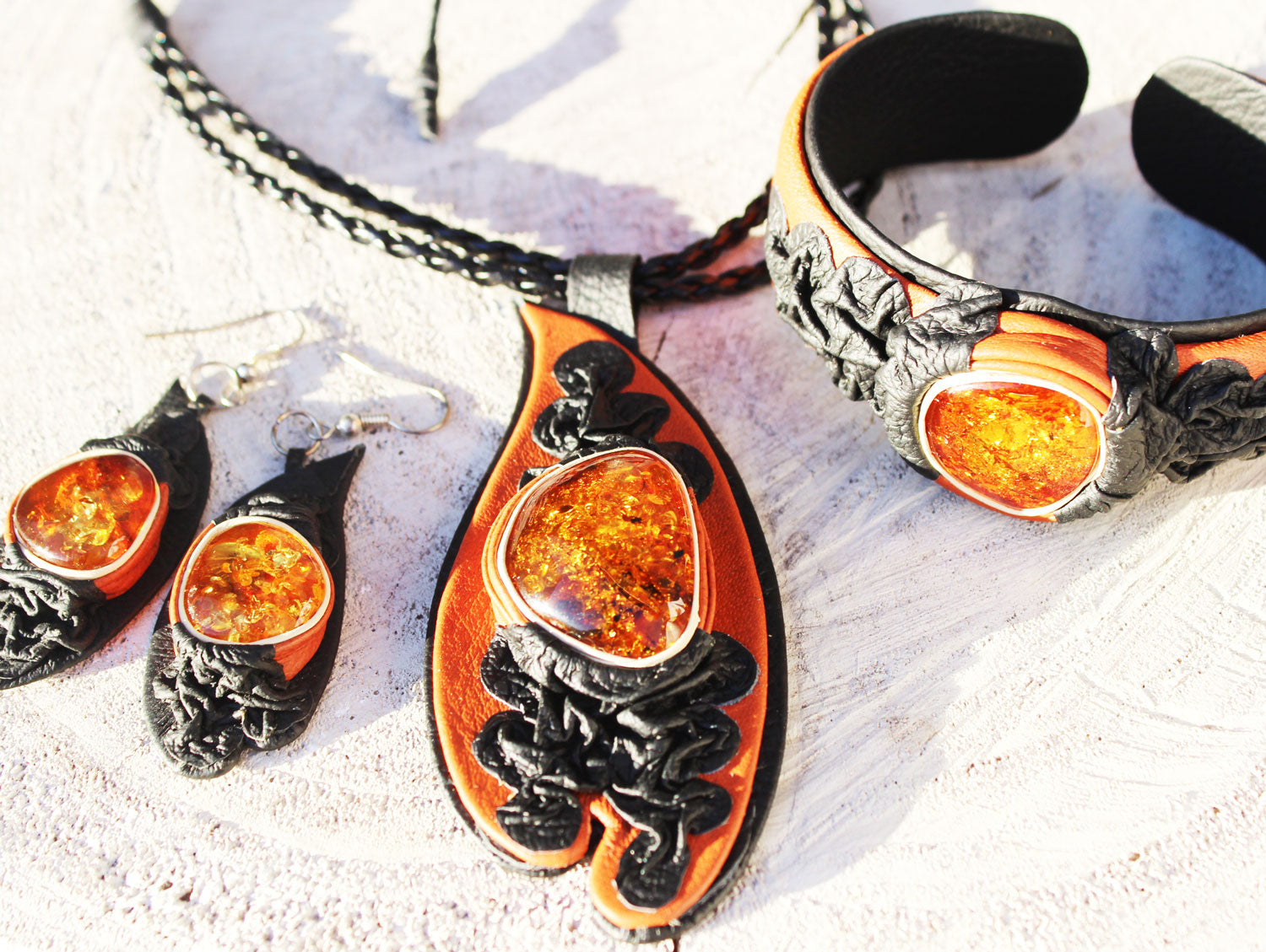 Materials: Baltic amber, Leather