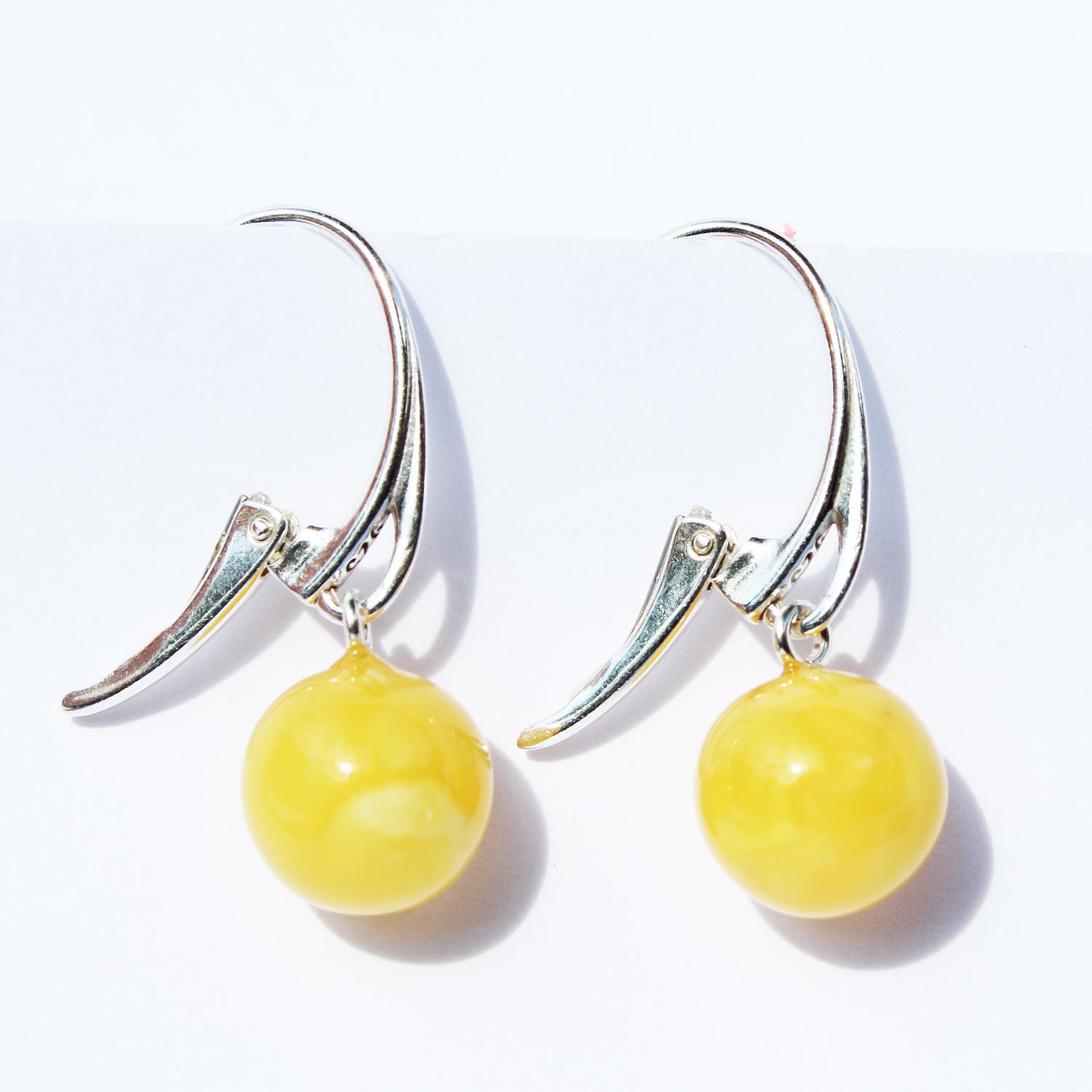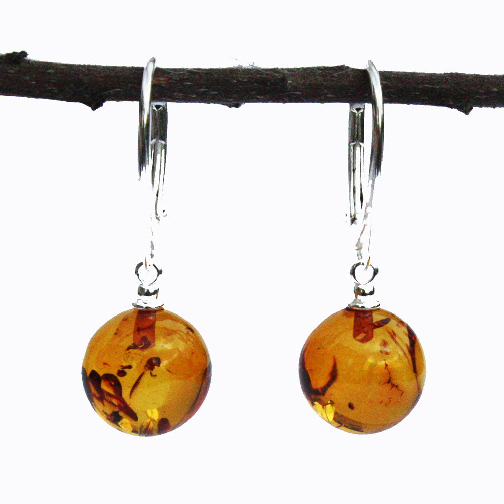 Baltic Amber Ball Earrings with sterling silver fittings.