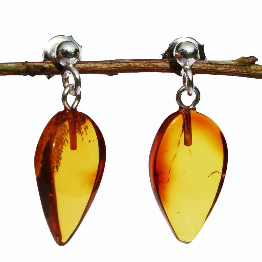 Baltic Honey Amber Dangle Leaf Studs with sterling silver back finding.