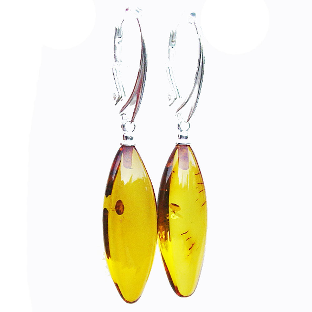 Beautiful Baltic Amber drop Earrings with sterling silver fittings. Capture the warmth of Amber.