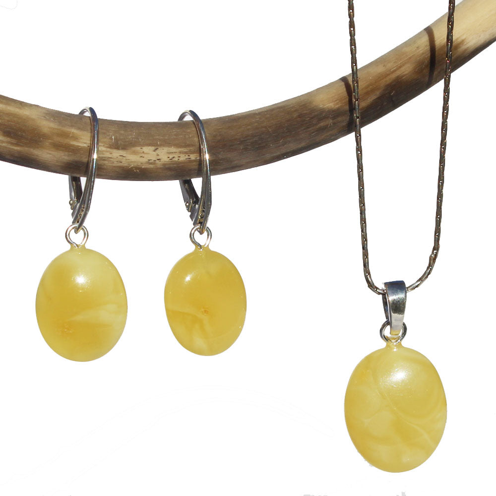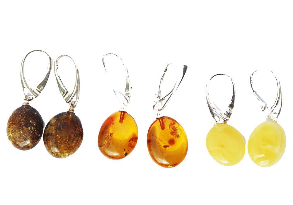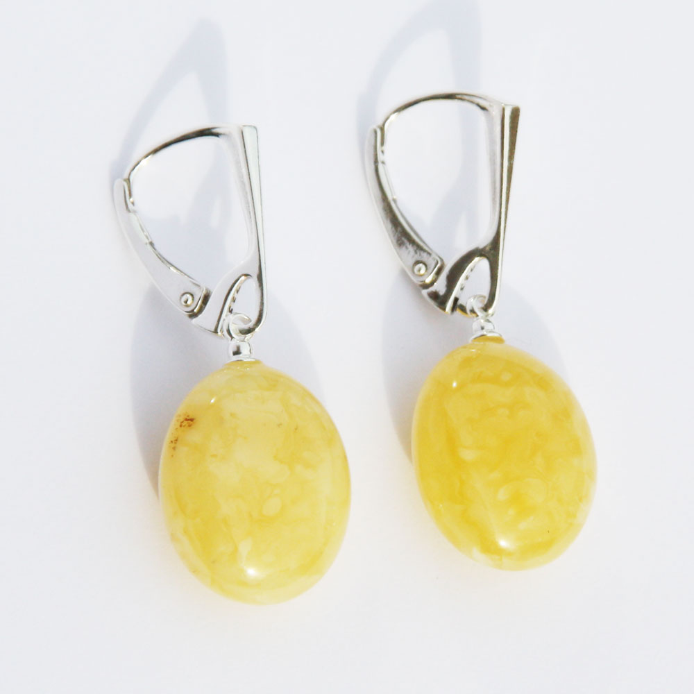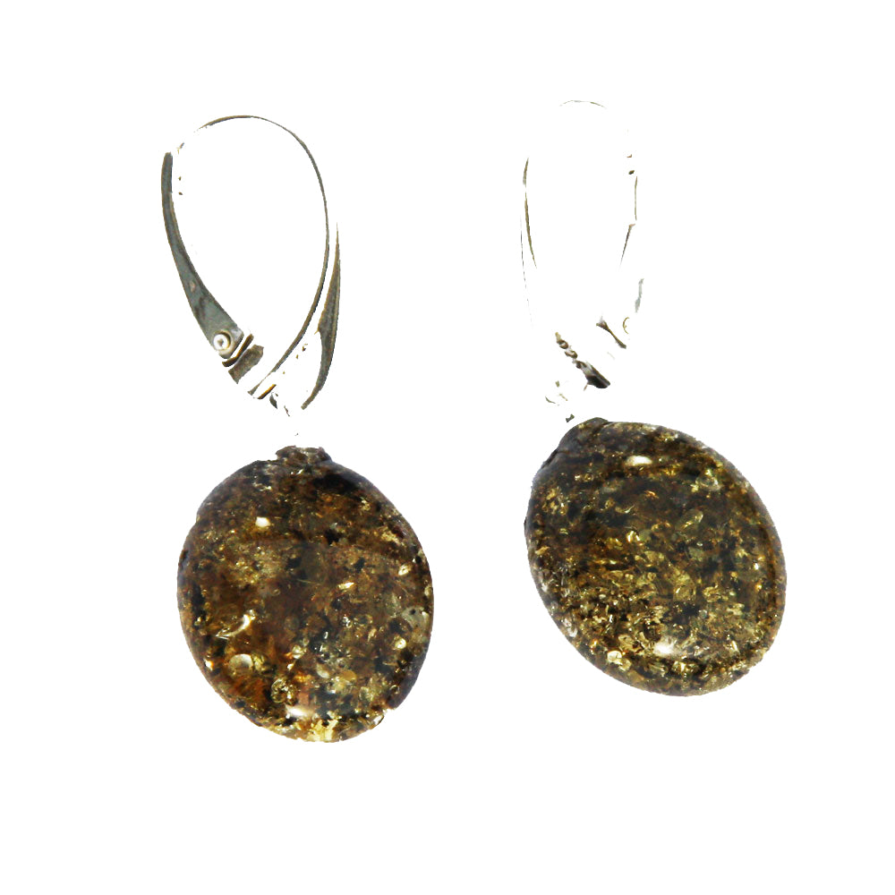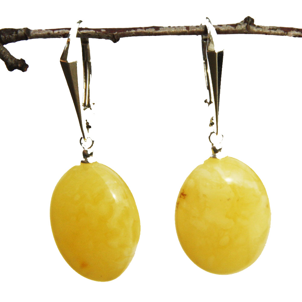 Honey Baltic Amber Oval Earrings - with sterling silver fittings.