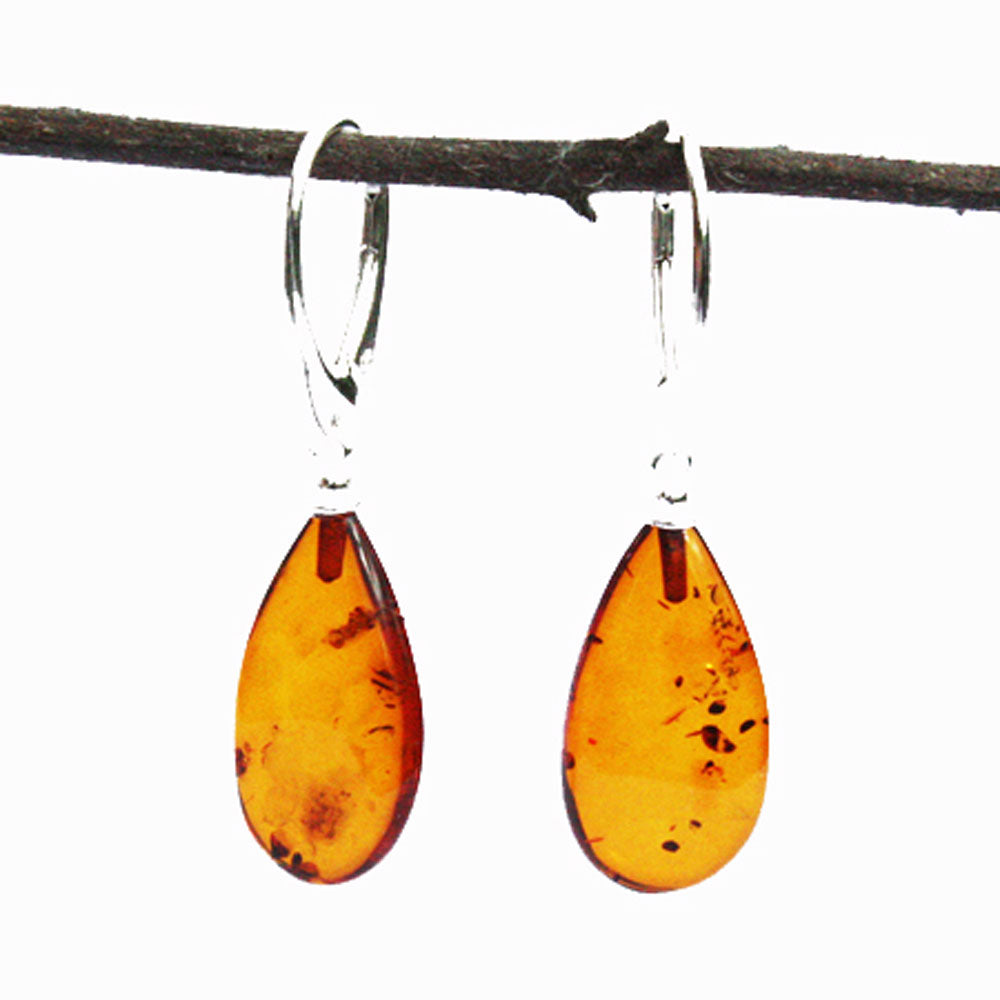 Lovely Baltic Amber Teardrop Earrings with sterling silver fittings. Capture the warmth of Amber. Make a set with pendant or charm.