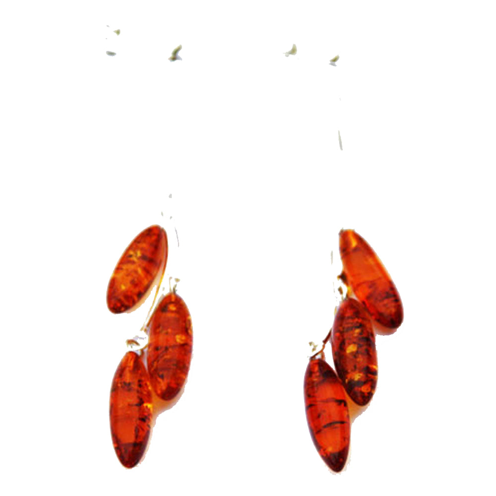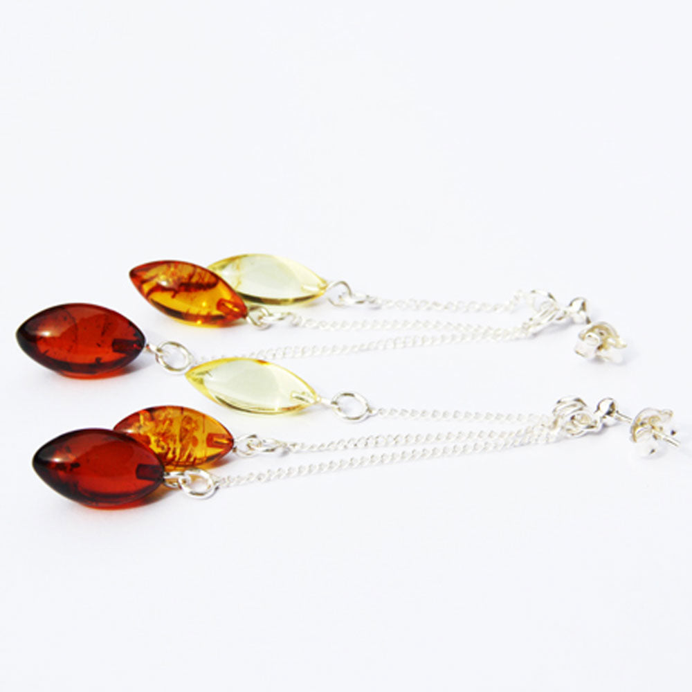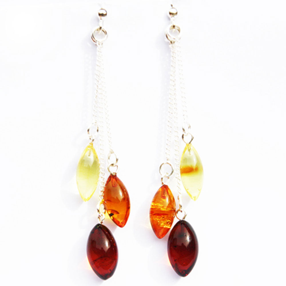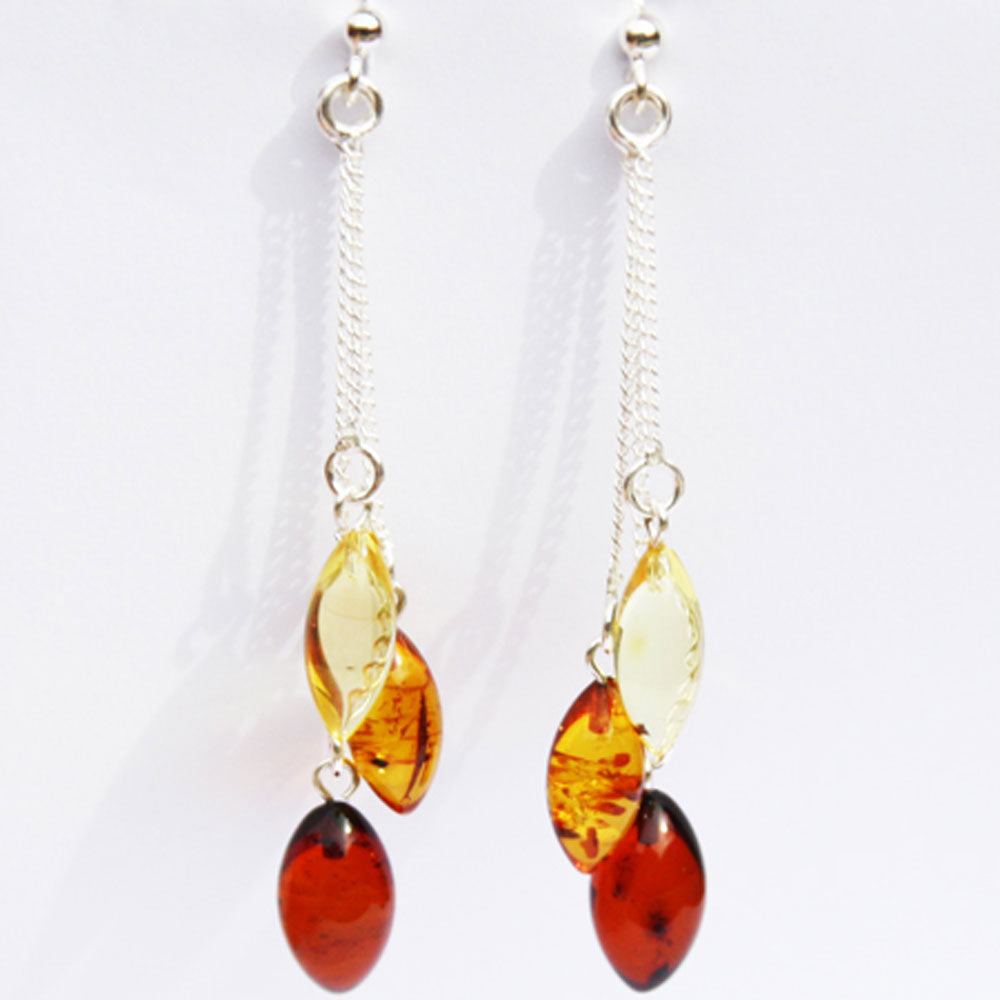 Stunning Baltic Honey or Multicolour Drop Amber Earrings - Triple Chain with sterling silver back finding.