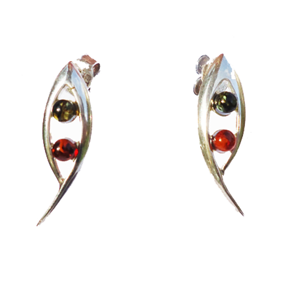 Delicate sterling silver 925 fittings and small round multicolour baltic amber long dangle stud earrings. Amber is smoothly polished to show off the natural content and shine. Also we are very pleased to be able to offer the matching necklace-pendant.