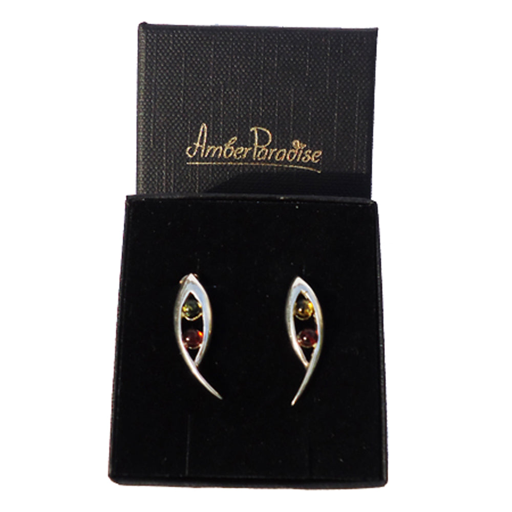Delicate sterling silver 925 fittings and small round multicolour baltic amber long dangle stud earrings.