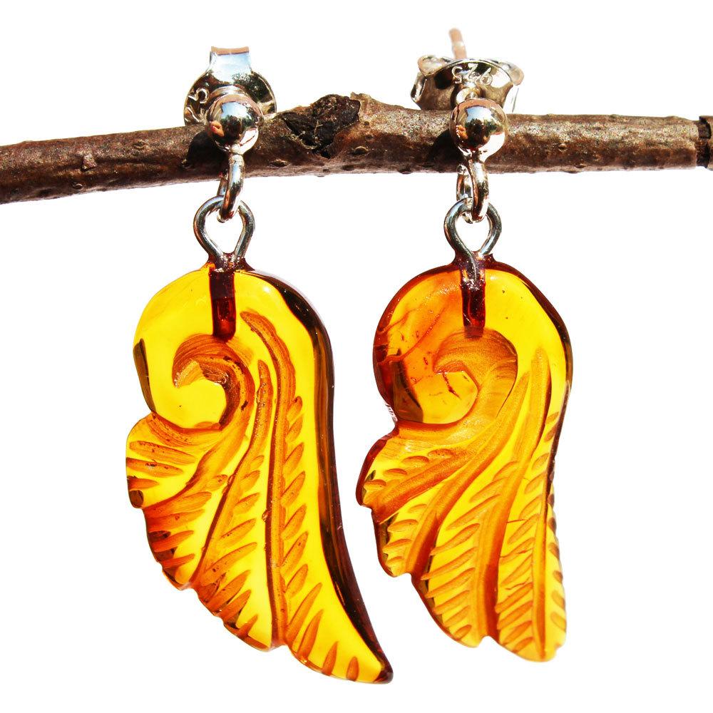 Baltic Honey Amber Studs 'Angel Wings' with sterling silver back finding.
