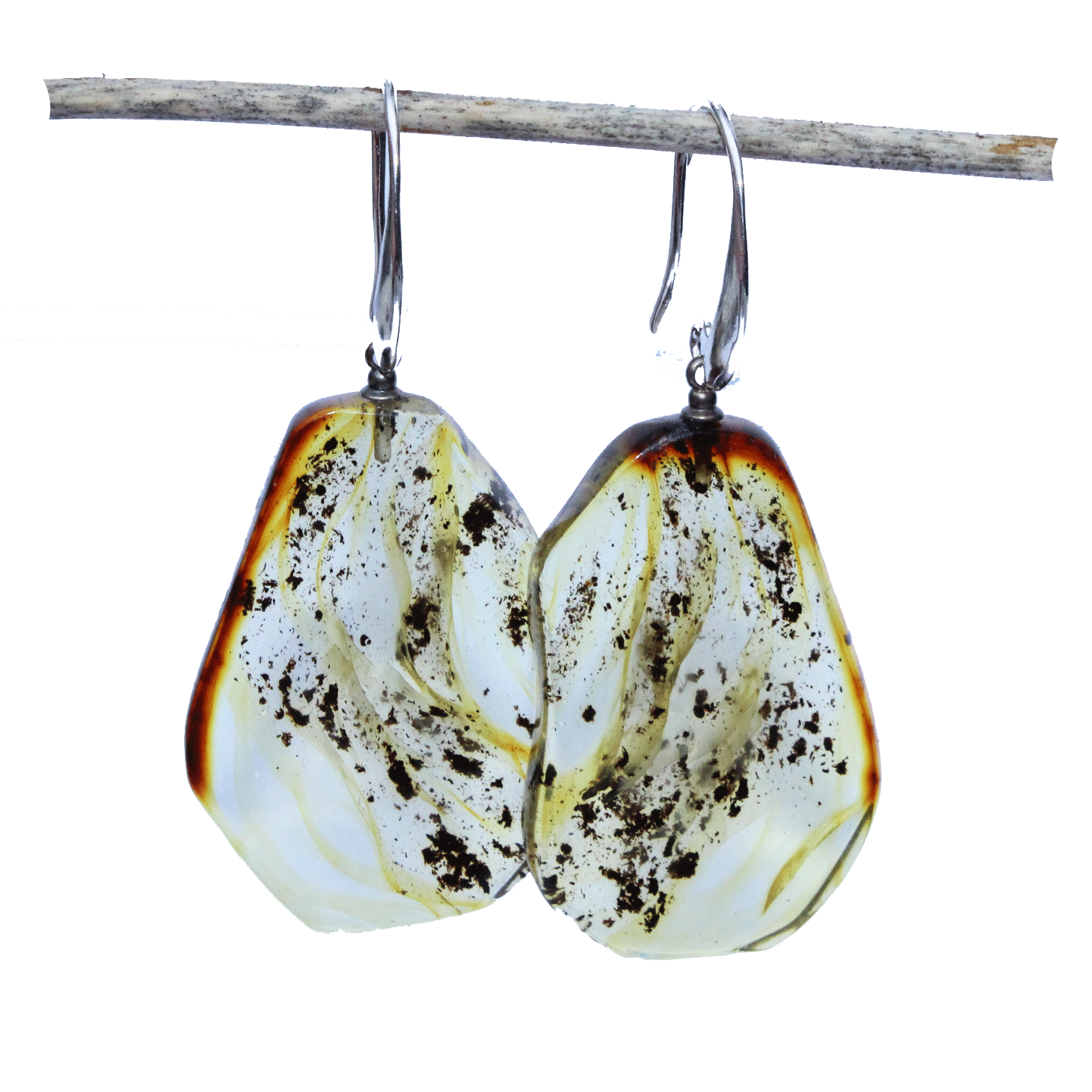Large Lemon with inclusions Amber Earrings - Slices