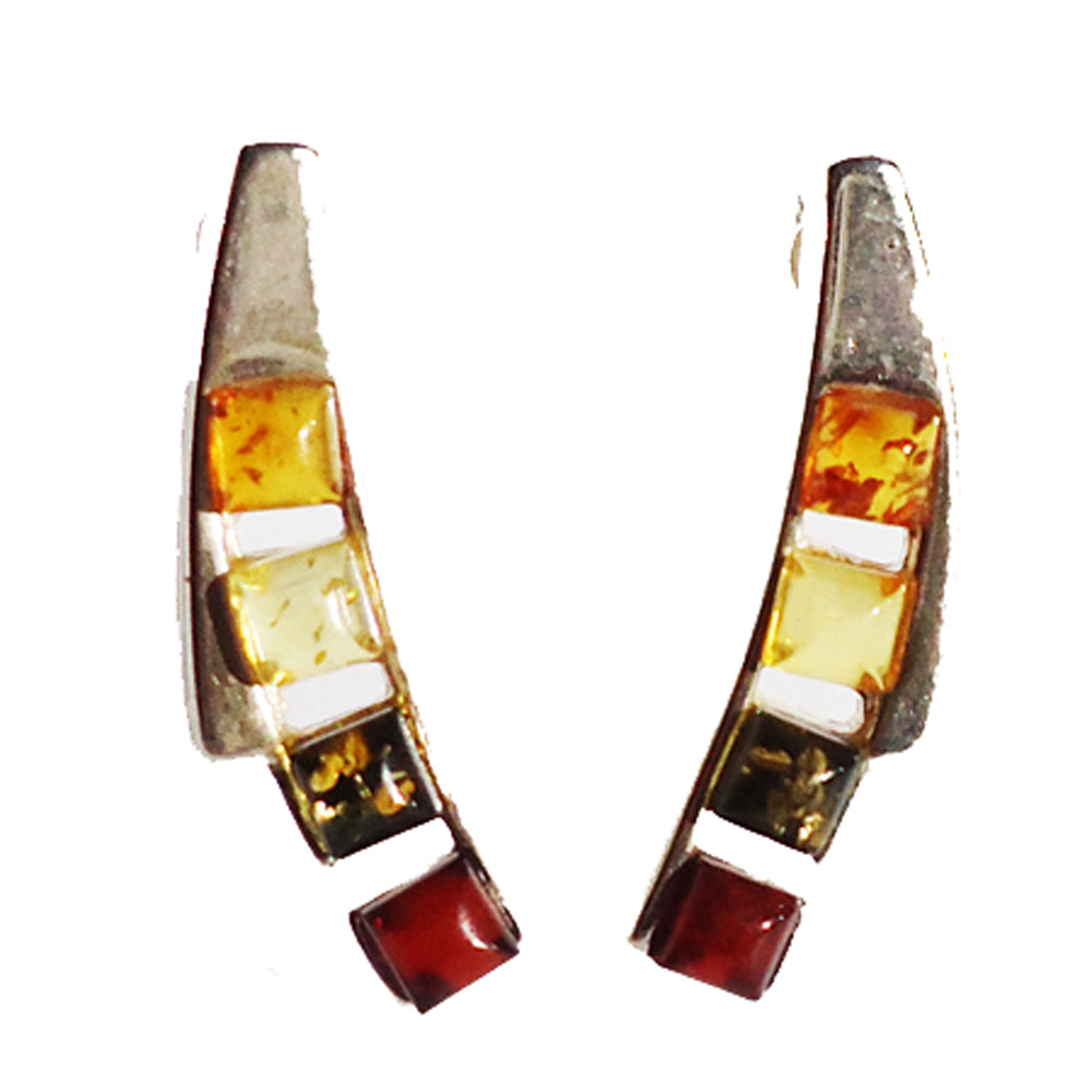Modern sterling silver 925 fittings and four small square multicolour baltic amber pieces used to make this stud earrings. Amber is smoothly polished to show off the natural content and shine. Also we are very pleased to be able to offer the matching necklace-pendant.