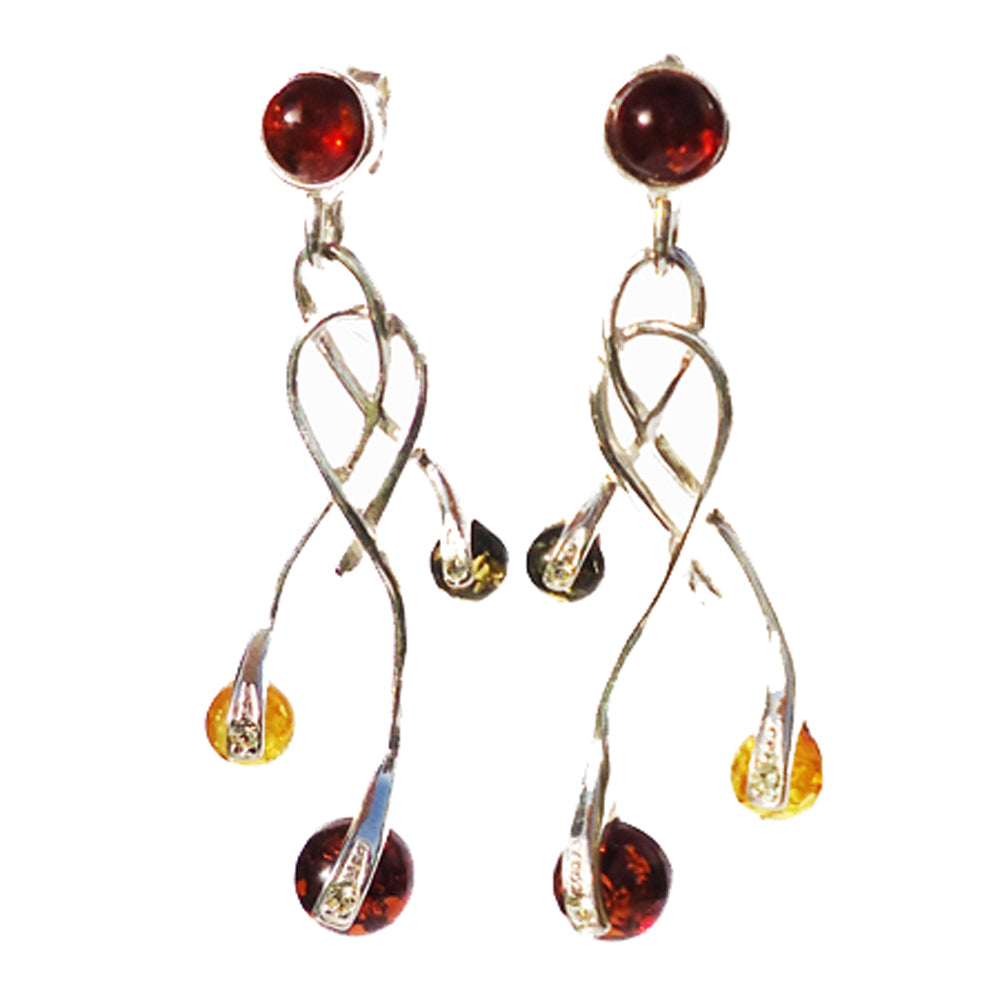Playful sterling silver 925 fittings and round multicolour baltic amber long dangle earrings. Amber is smoothly polished to show off the natural content and shine. Also we are very pleased to be able to offer the matching necklace-pendant.