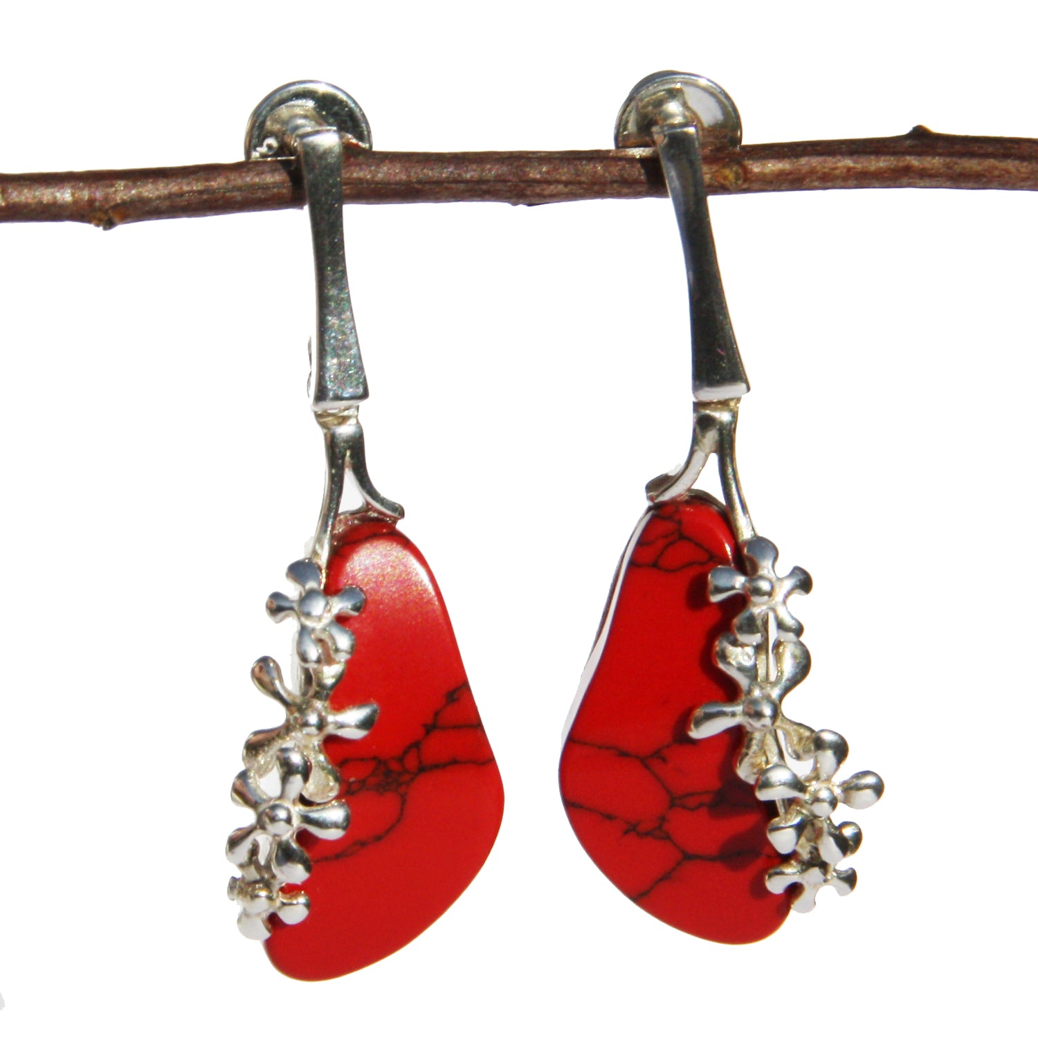 Red Coral Flower Earrings