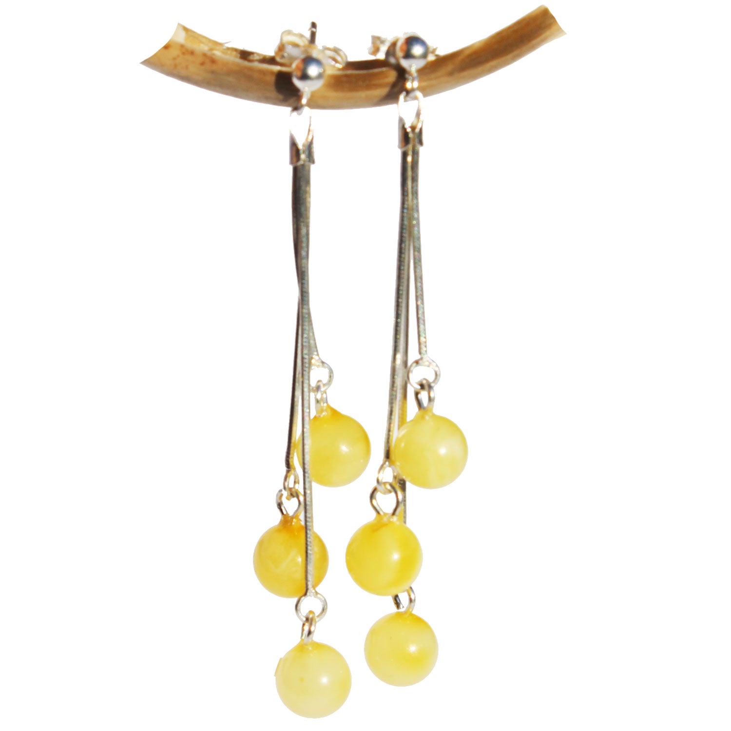 Stunning Baltic Round Amber Earrings - Triple Chains