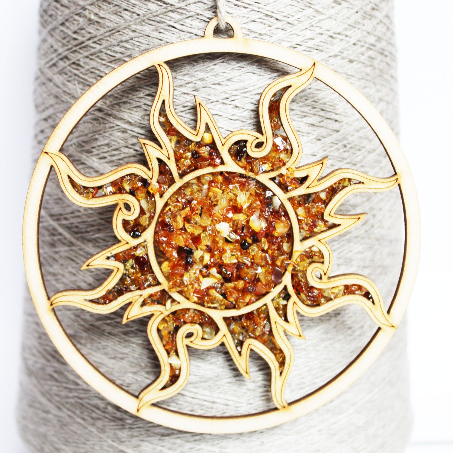 HOME ACCESSORY - Amber decorated wooden hangings are a beautiful and sparkling addition to your home. They can be used on your windows, mirrors, door handles, furniture handles or to create ornaments for special occasions like Christmas, Easter etc.