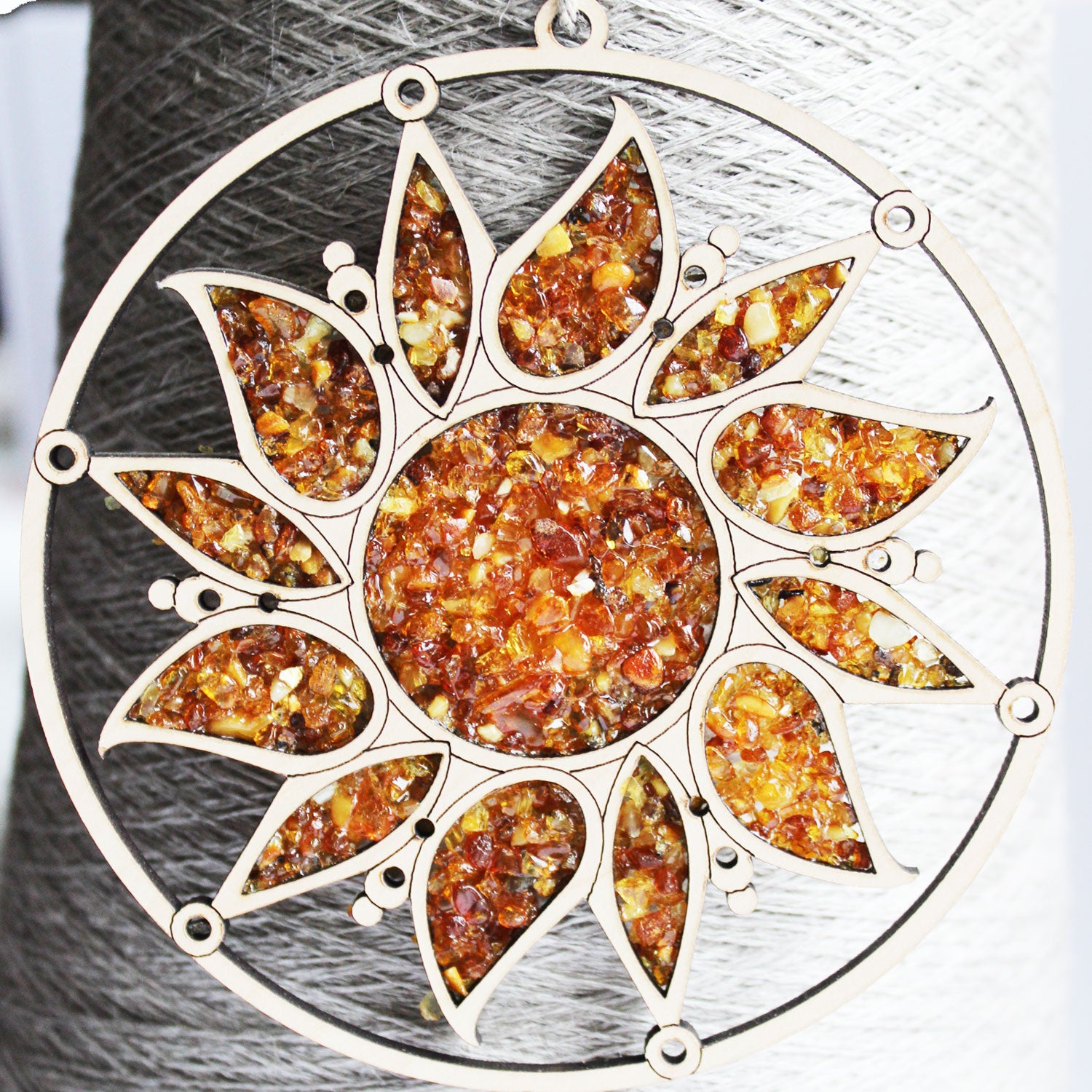 Beautiful Amber Burning Sun Mosaic made of wood and filled with genuine Baltic Amber. diff designs Charm for your home Unique and surprising gift