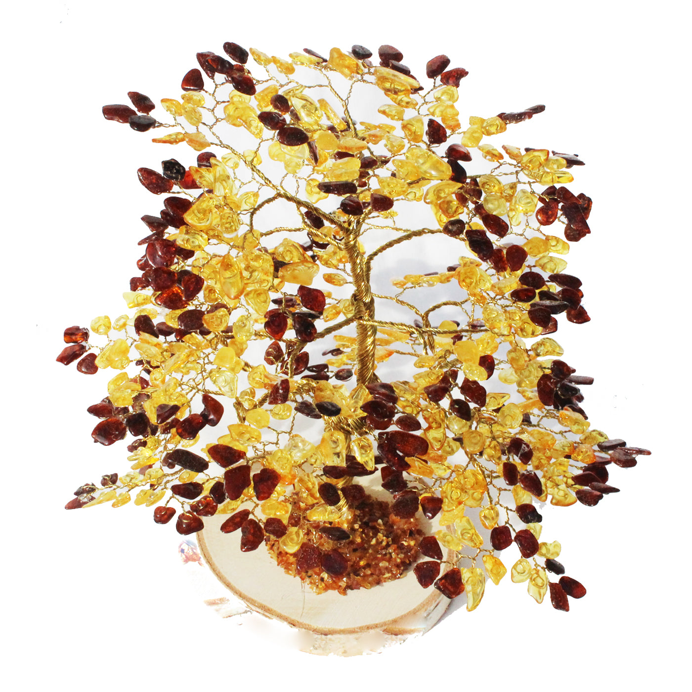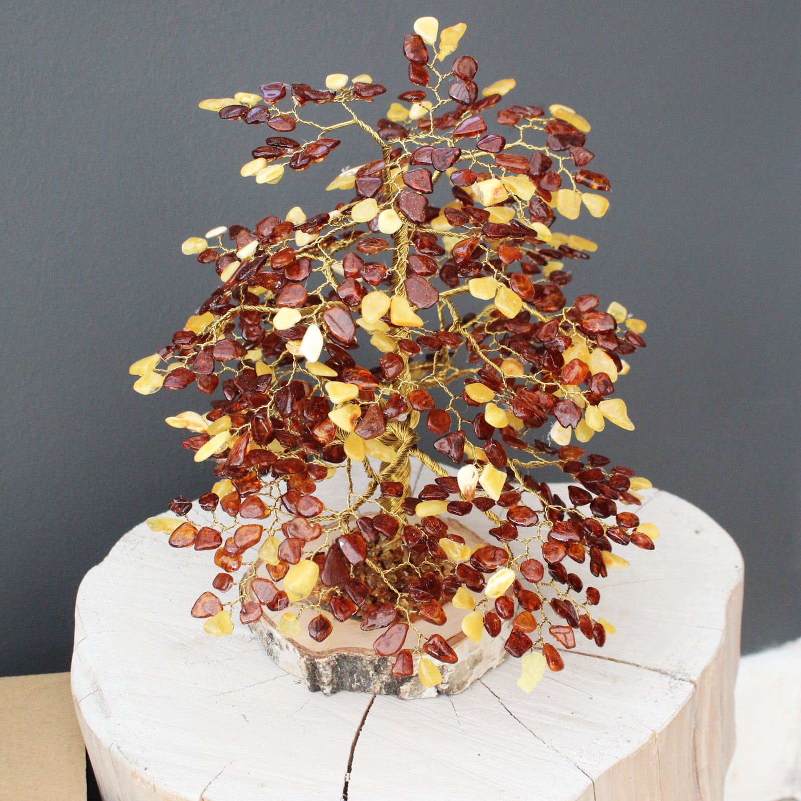 Impressive Large Oak Amber Tree (630 amber leaves) mounted on stone is hand-made by Lithuanian Artists. The Amber Tree leaves are made from genuine polished Baltic amber stones attached to branches. Twisted copper wires make the branches flexible. Handcrafted in Lithuania on the Baltic, this stunning piece is a treasure and a collectible item that will be cherished for generations.
