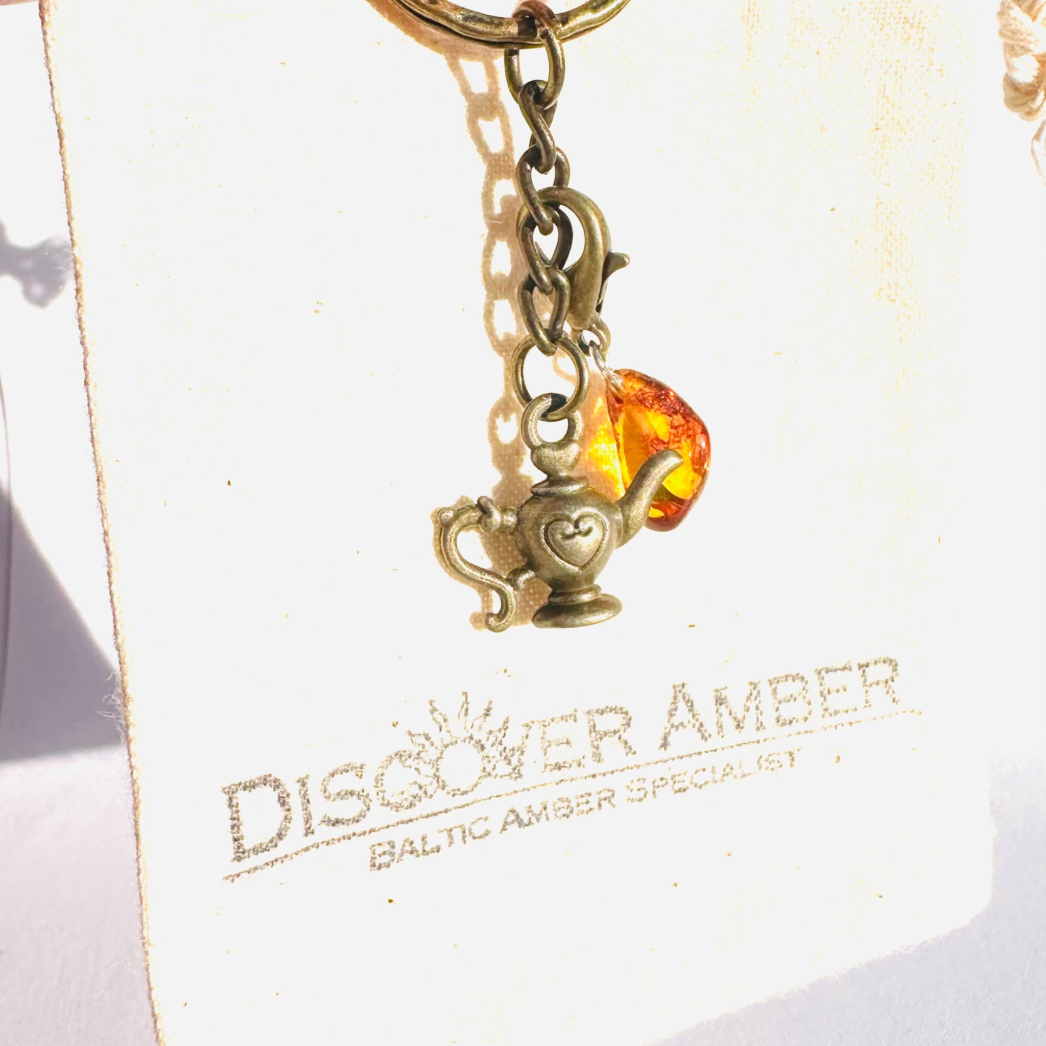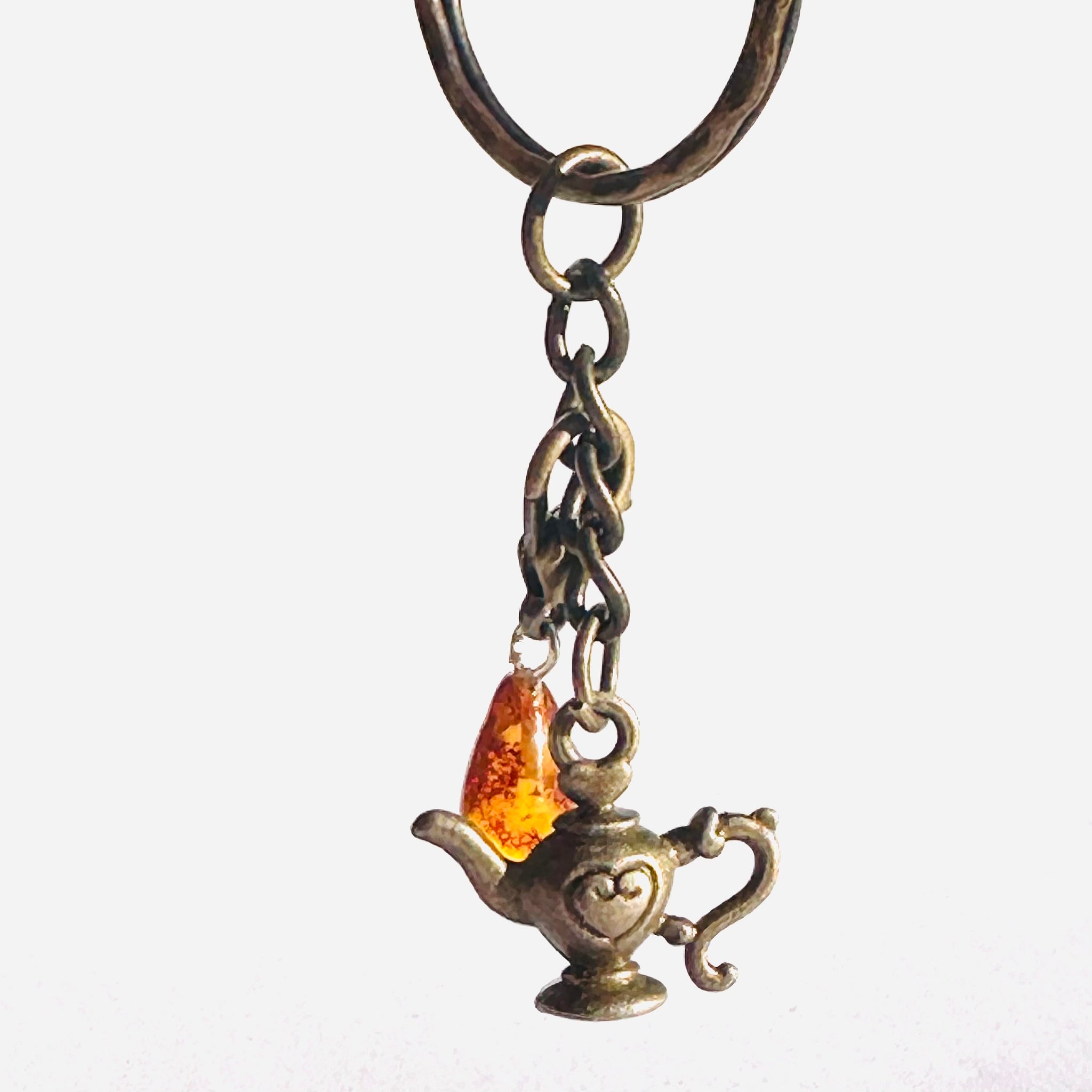 Keyring Genie in the bottle with Amber Charm for luck, perfect unique gift. Lovely accessory for keys or handbag. Keychains and Lanyards, amber accessory