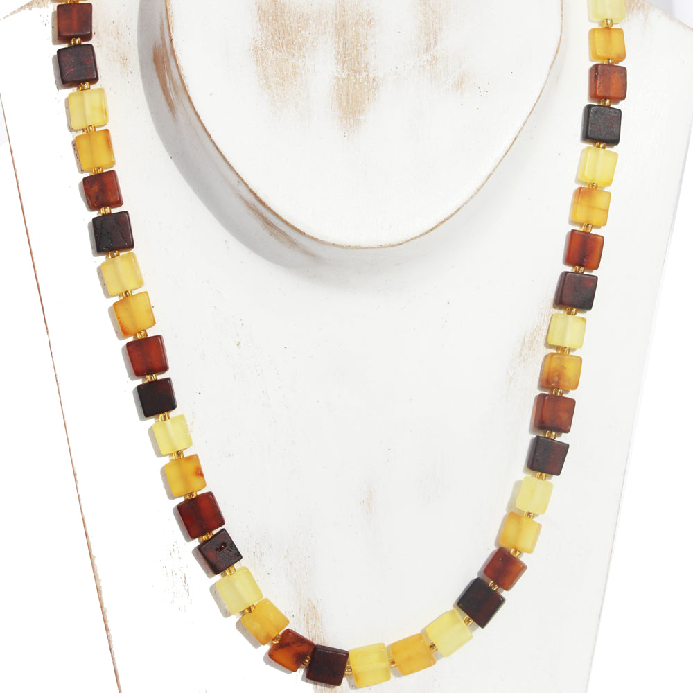 Elegant & Delicat Mixed Amber Necklace - Square