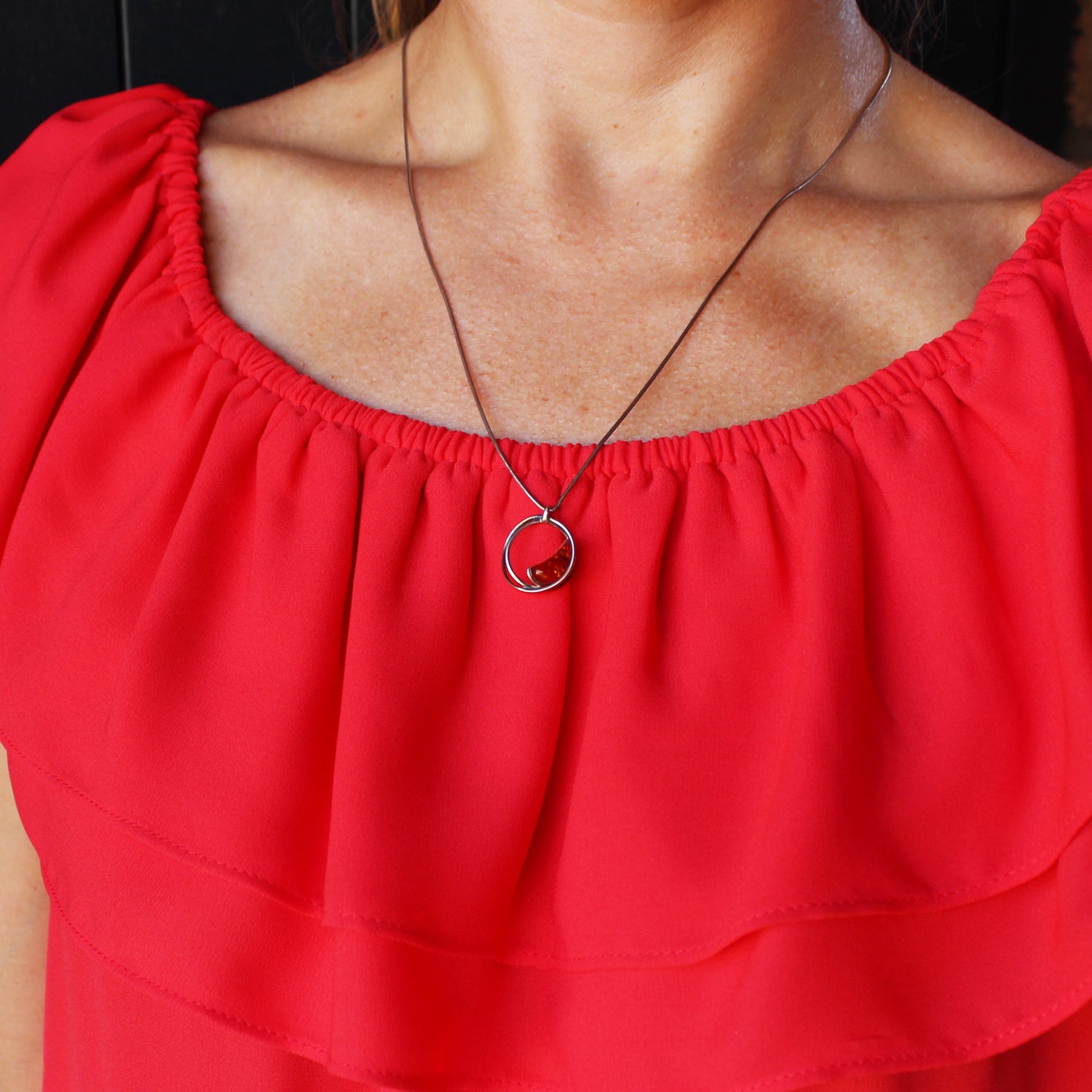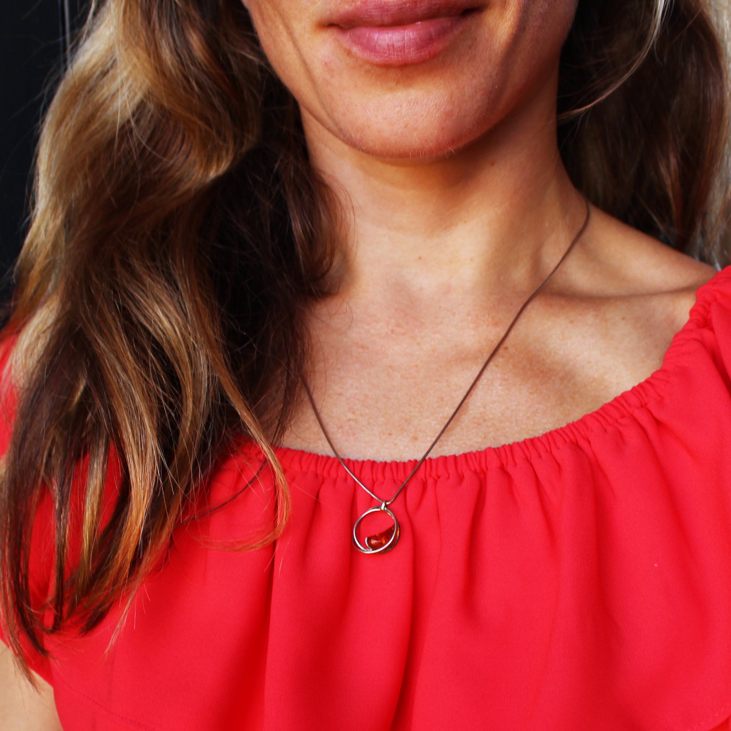 1. Elegant sterling silver 925 circle and drop cognac Baltic amber pendant. Amber is smoothly polished to show off the natural content and shine. Also we are very pleased to be able to offer the matching necklace-pendant.
