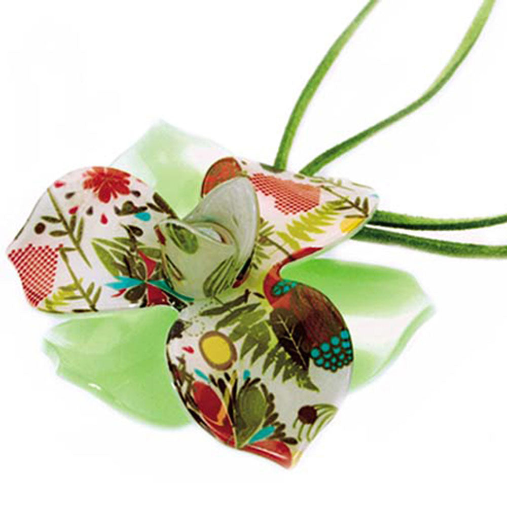 Retro Necklace - Pendant. Large stunning light green Resin flower with floral middle strung on green suede. It has clasp fastening and adjusts up to 21 inch.