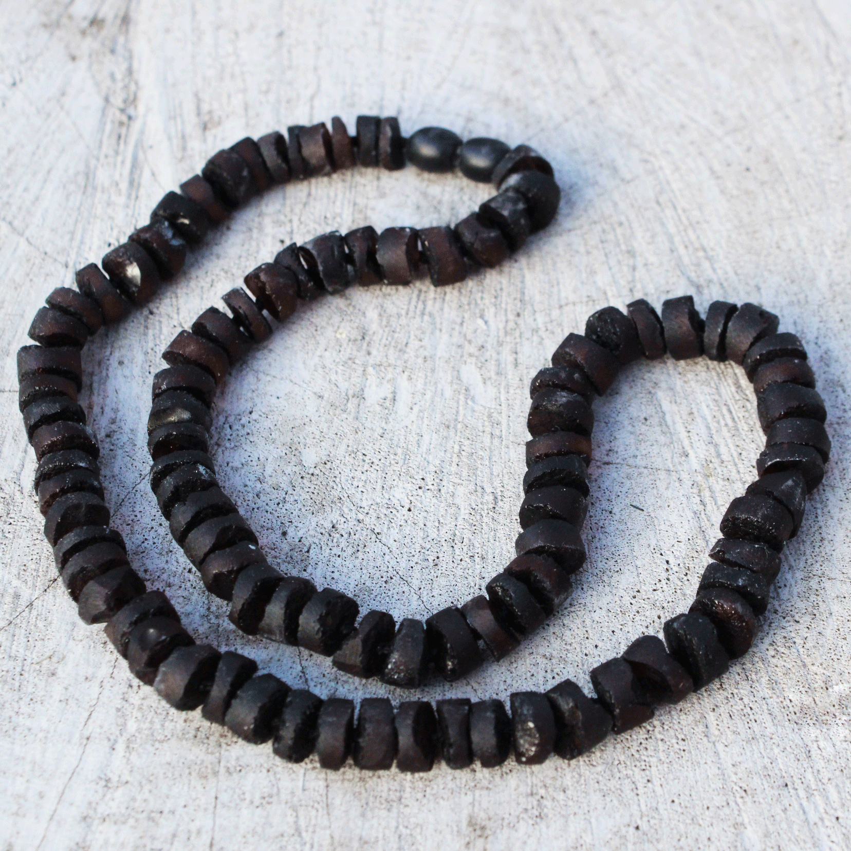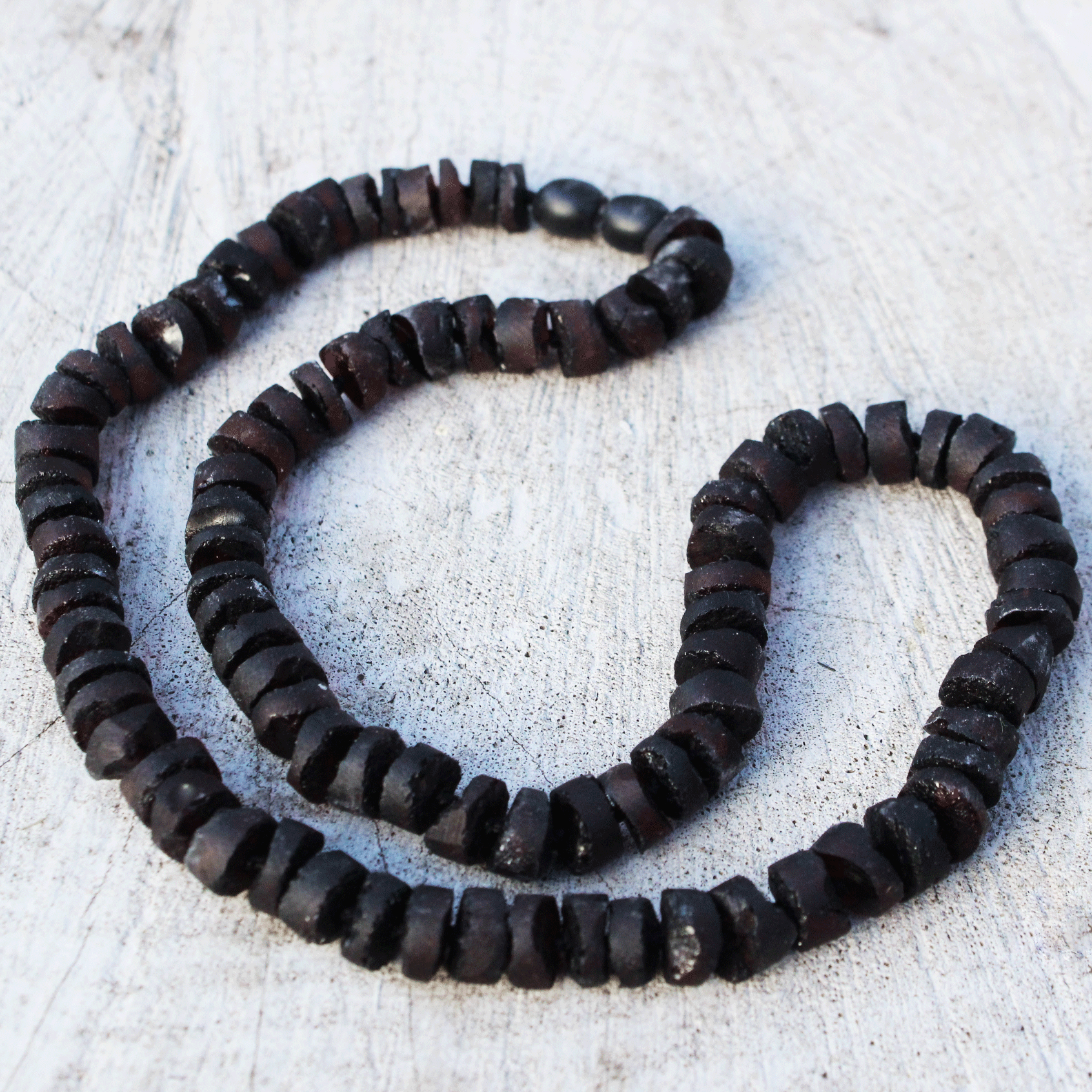 Unpolished Cherry Baltic Amber Disc Bead Necklace