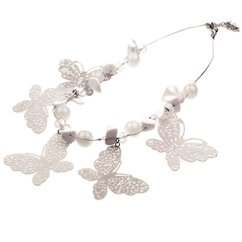 Wonderful Cream Vintage Butterfly necklace with white nuggets. It has clasp fastening and adjusts up to 20 inch