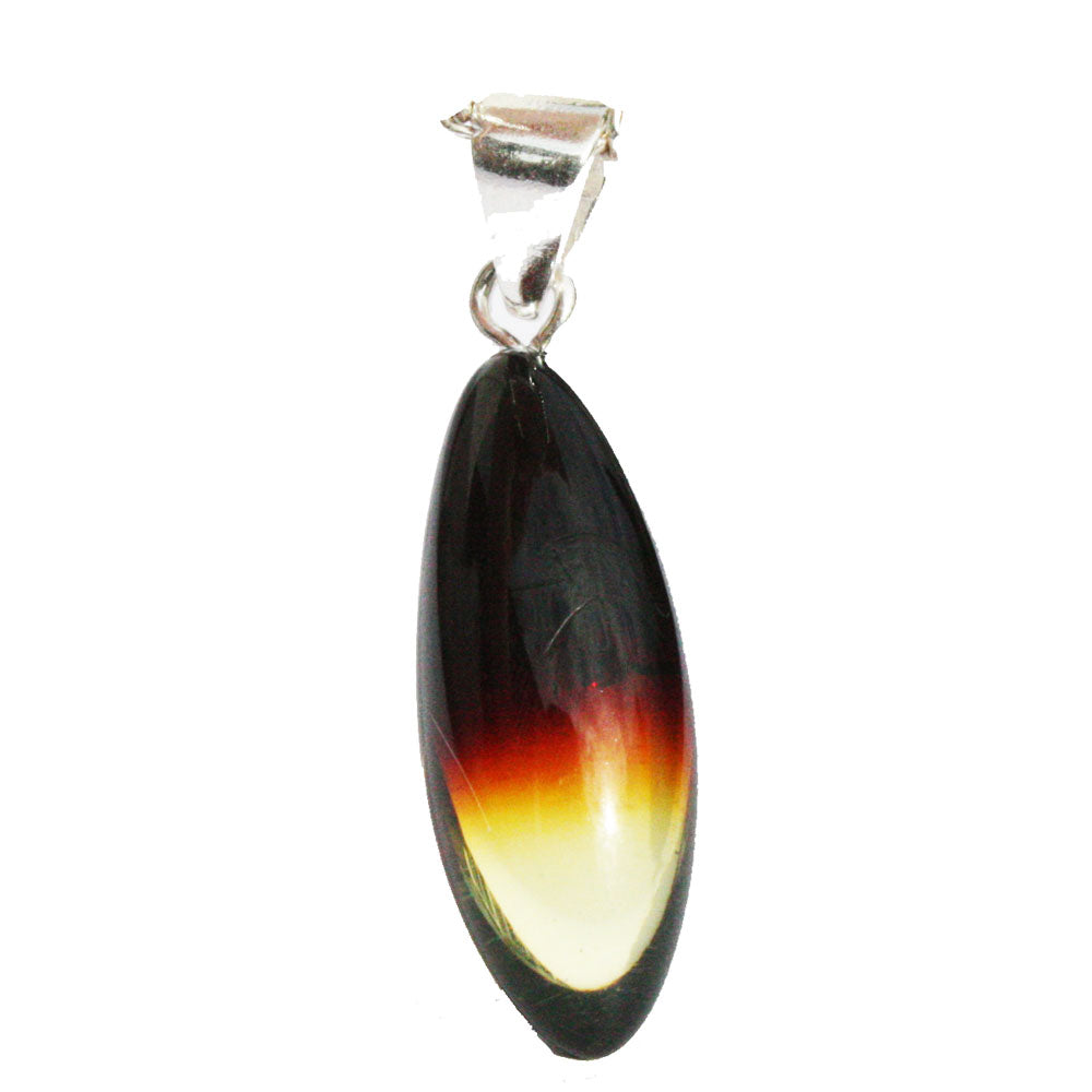 Baltic Rainbow Amber Drop Pendant/Charm with sterling silver hoop.