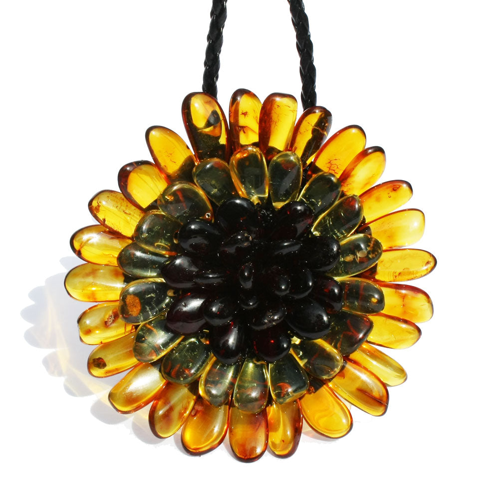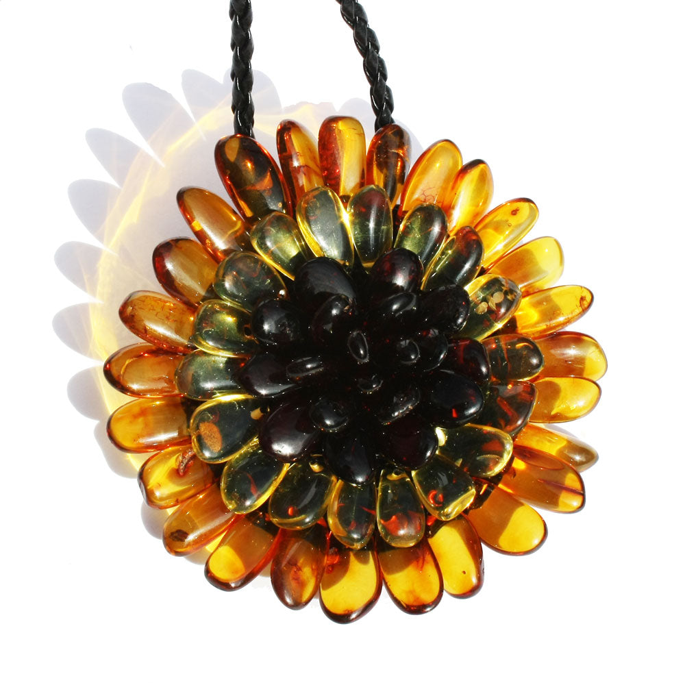 Beautiful Baltic Multicolour Amber Pendant Flower