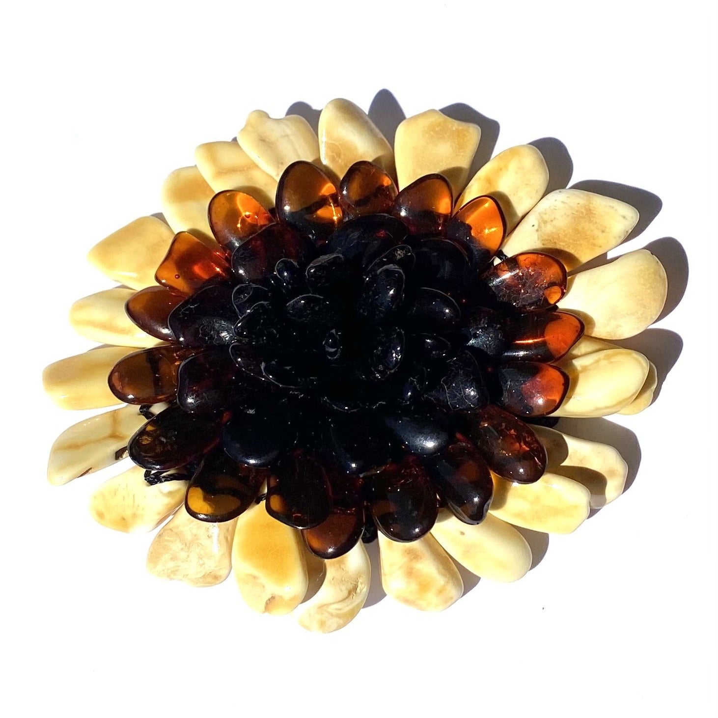 Stunning and Unique Amber Flower Brooch-Pendant-Necklace