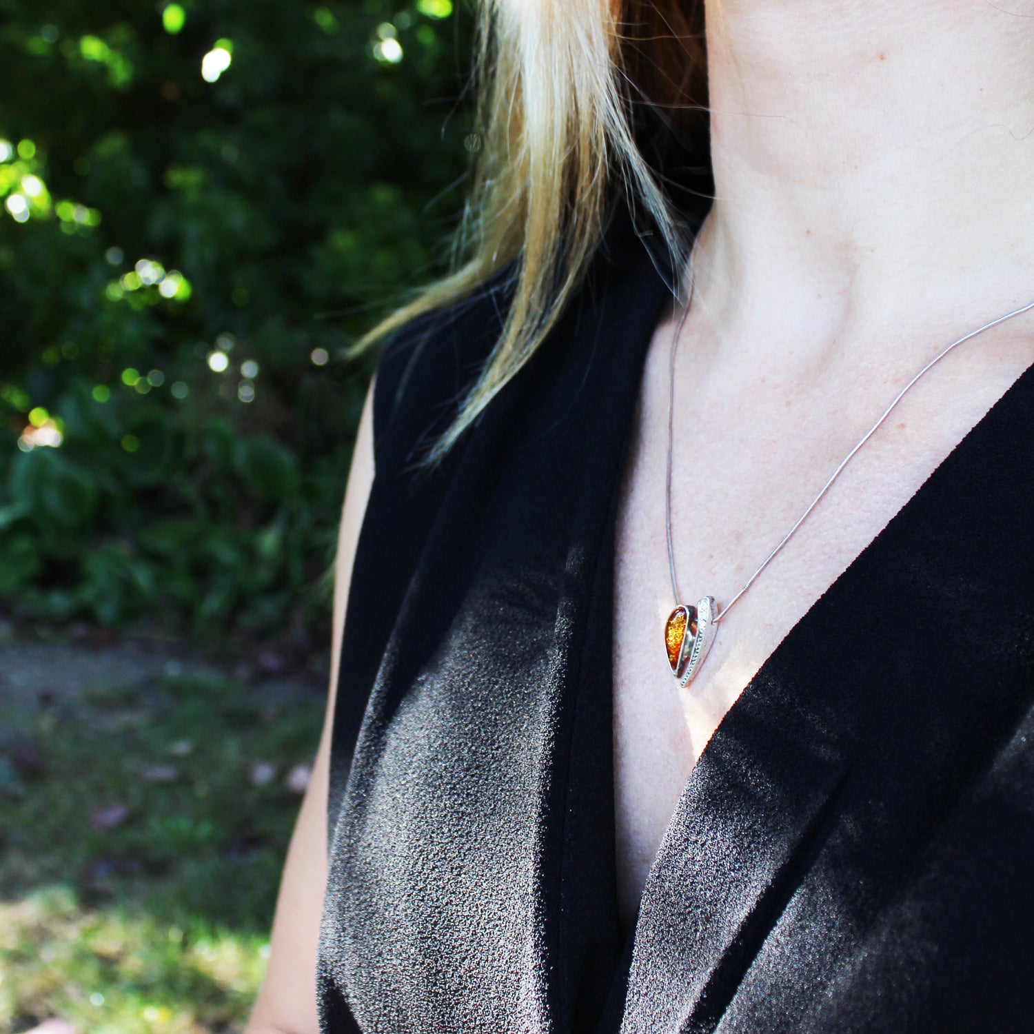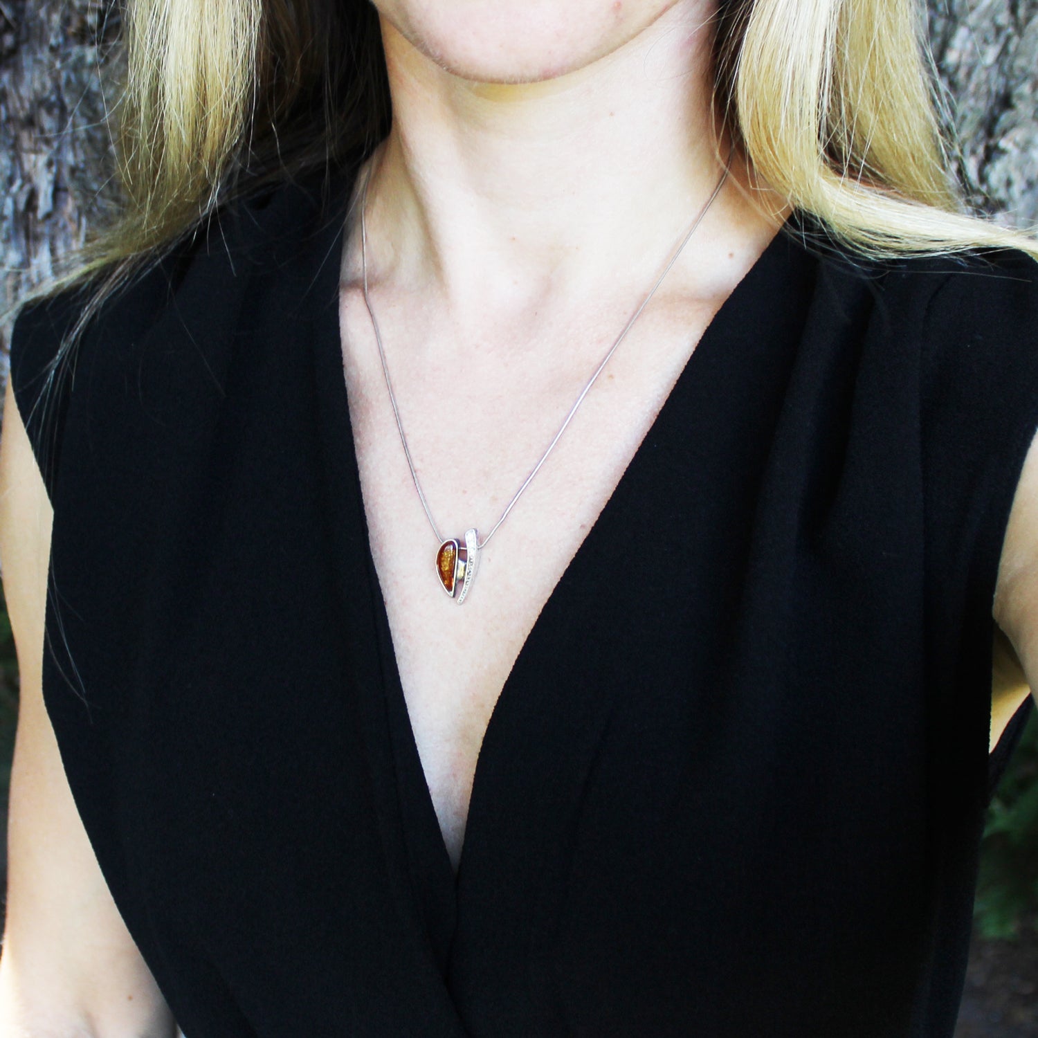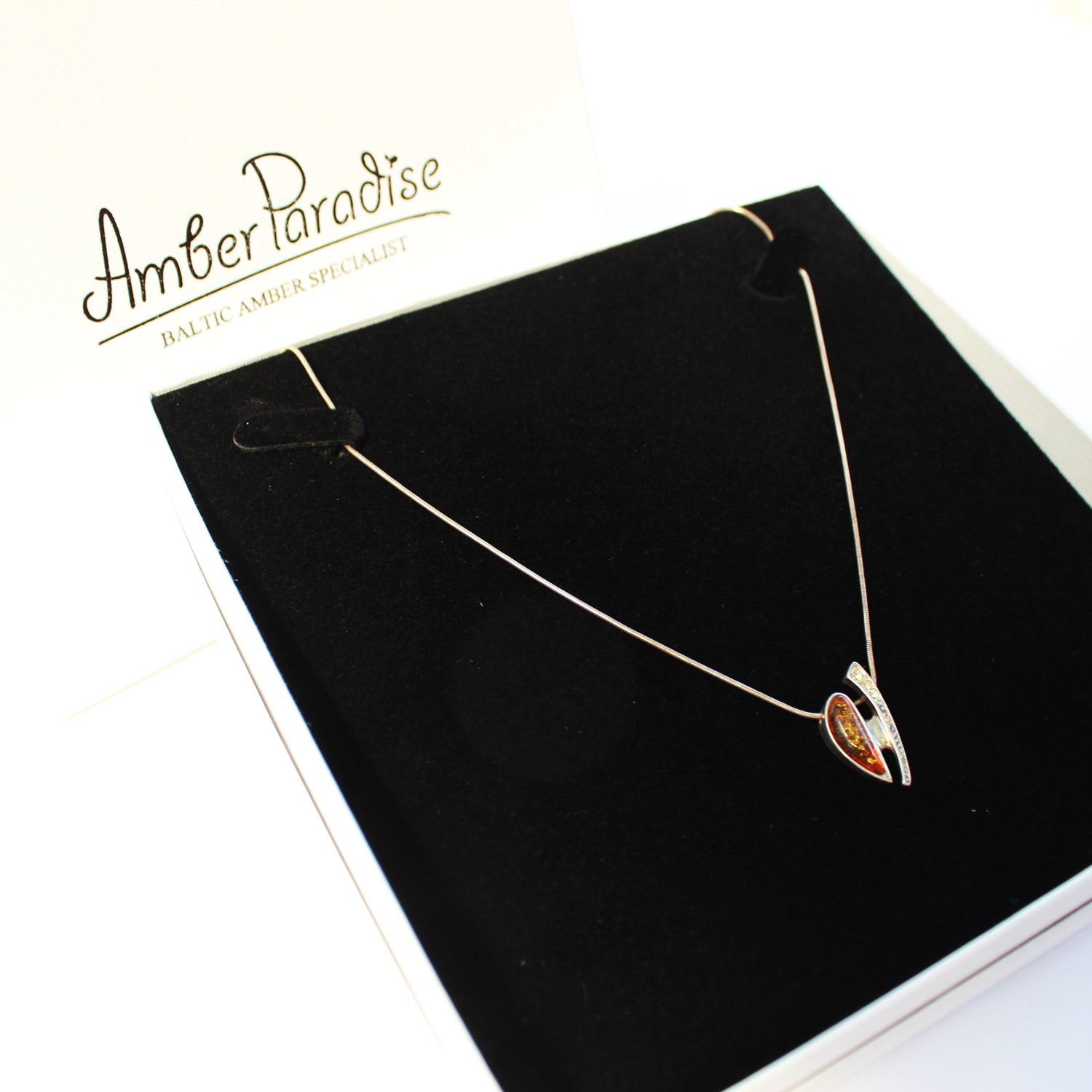 Festive sterling silver 925 and drop cognac baltic amber pendant necklace