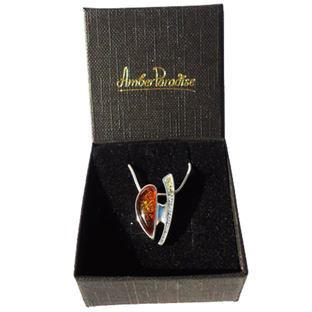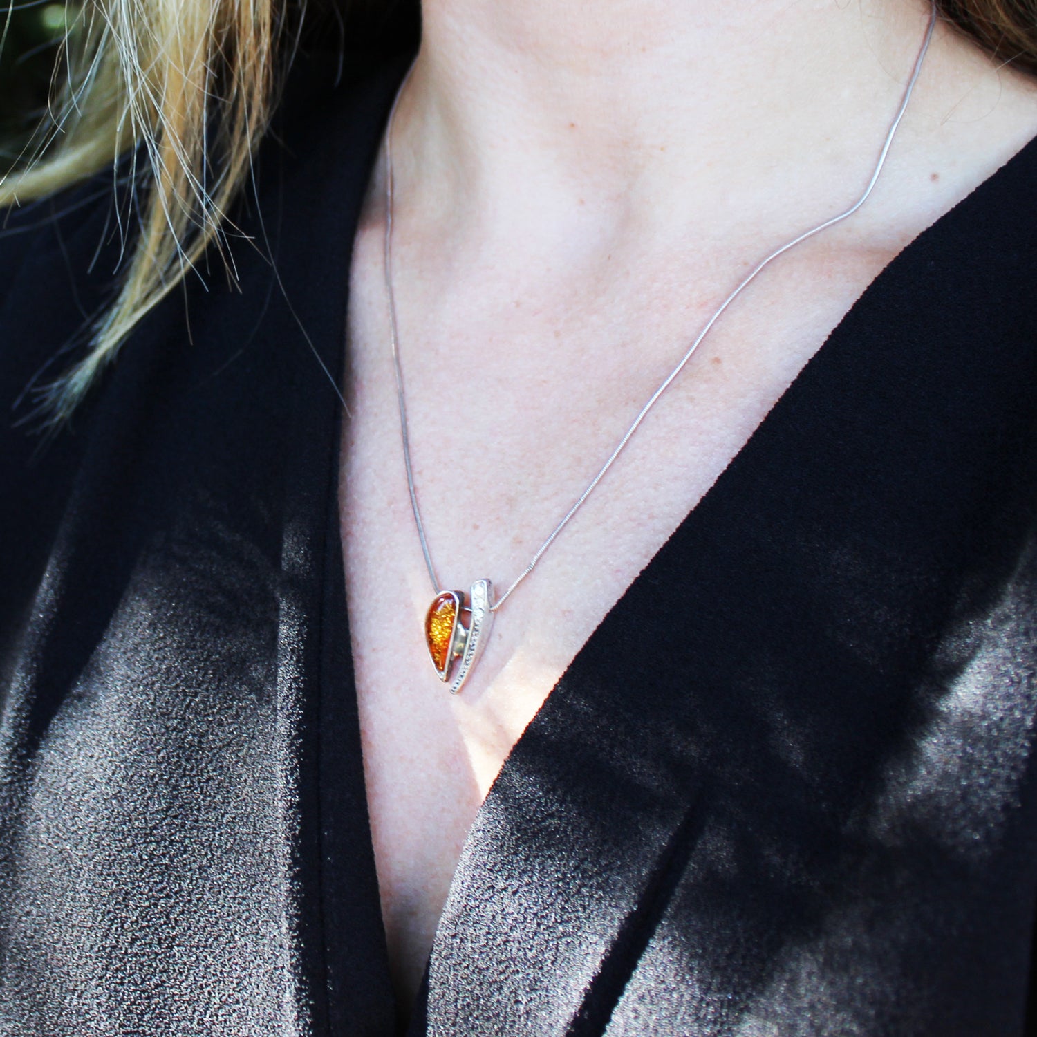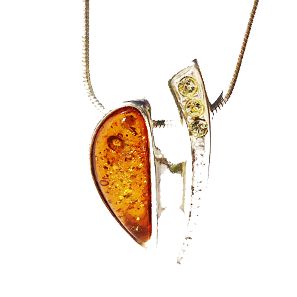 Festive sterling silver 925 and drop cognac baltic amber pendant necklace