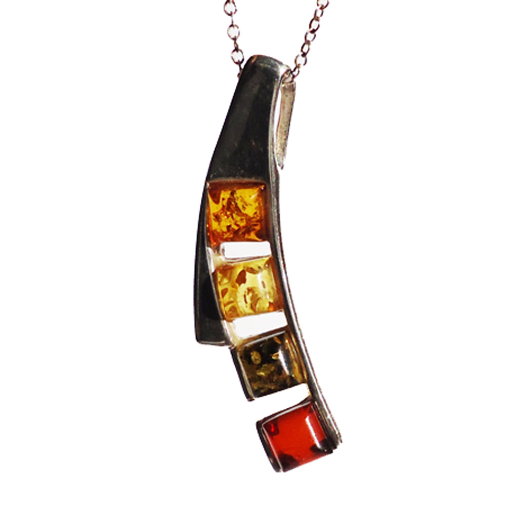 Modern sterling silver 925 fittings and four small square multicolour baltic amber pieces used to make this pendant