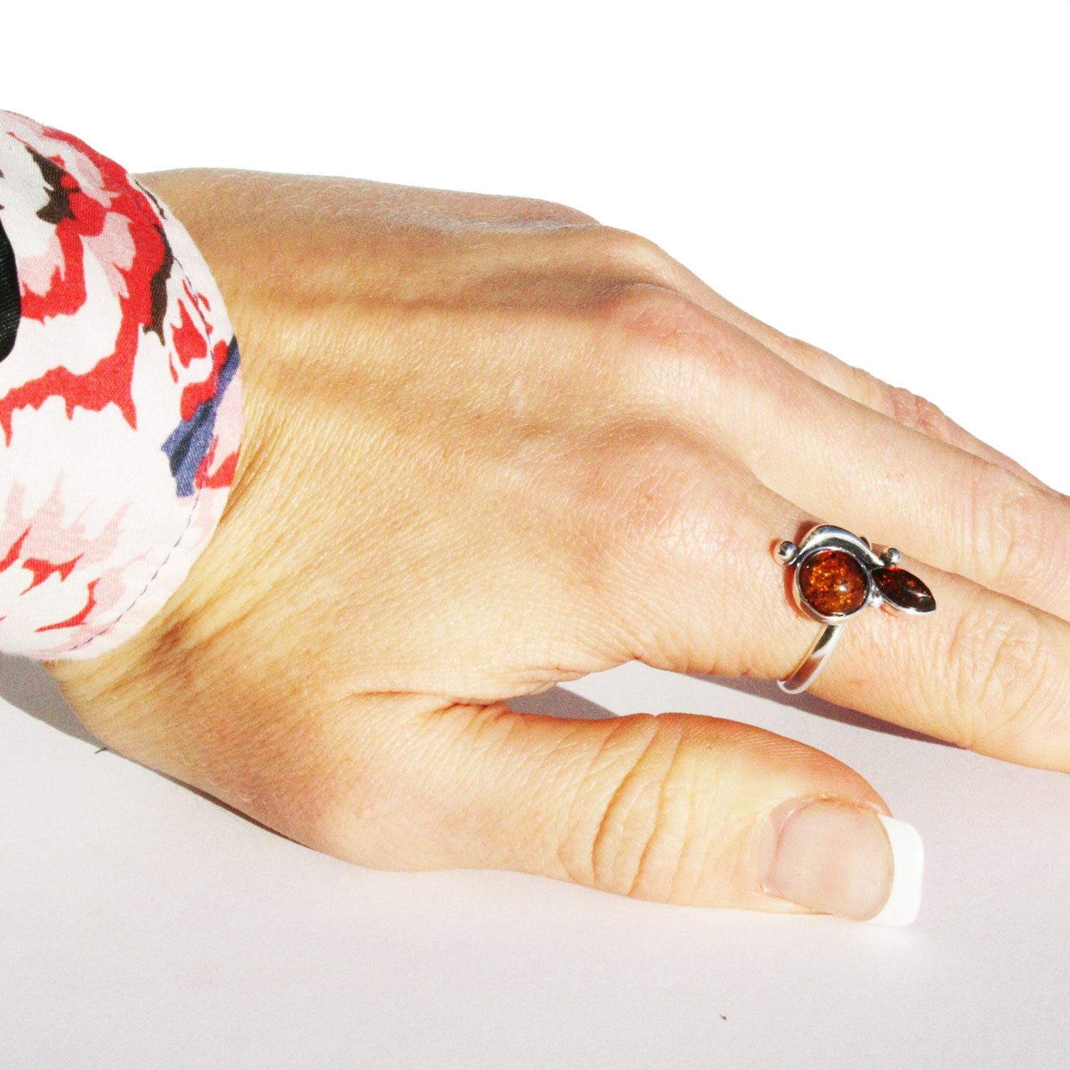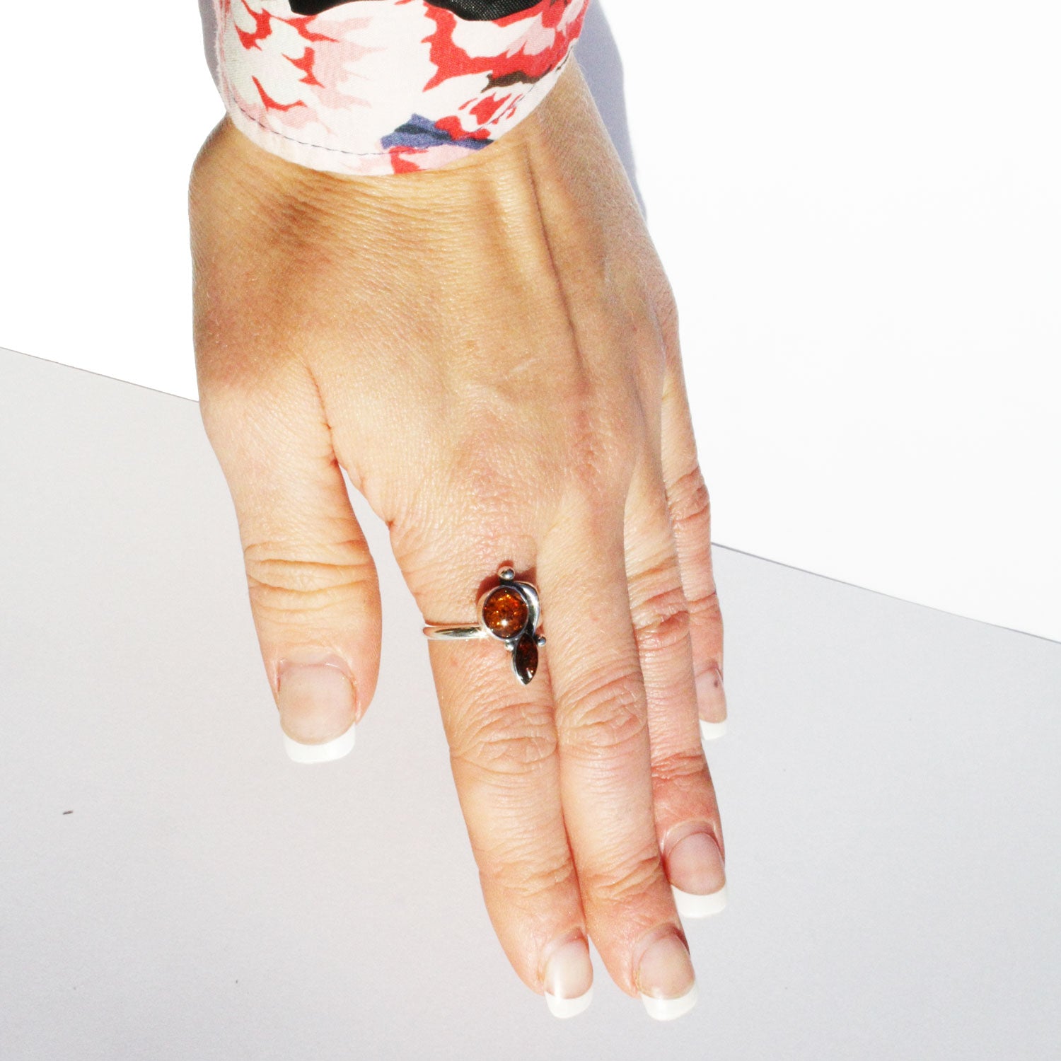 Amber Ring with two amber stones: