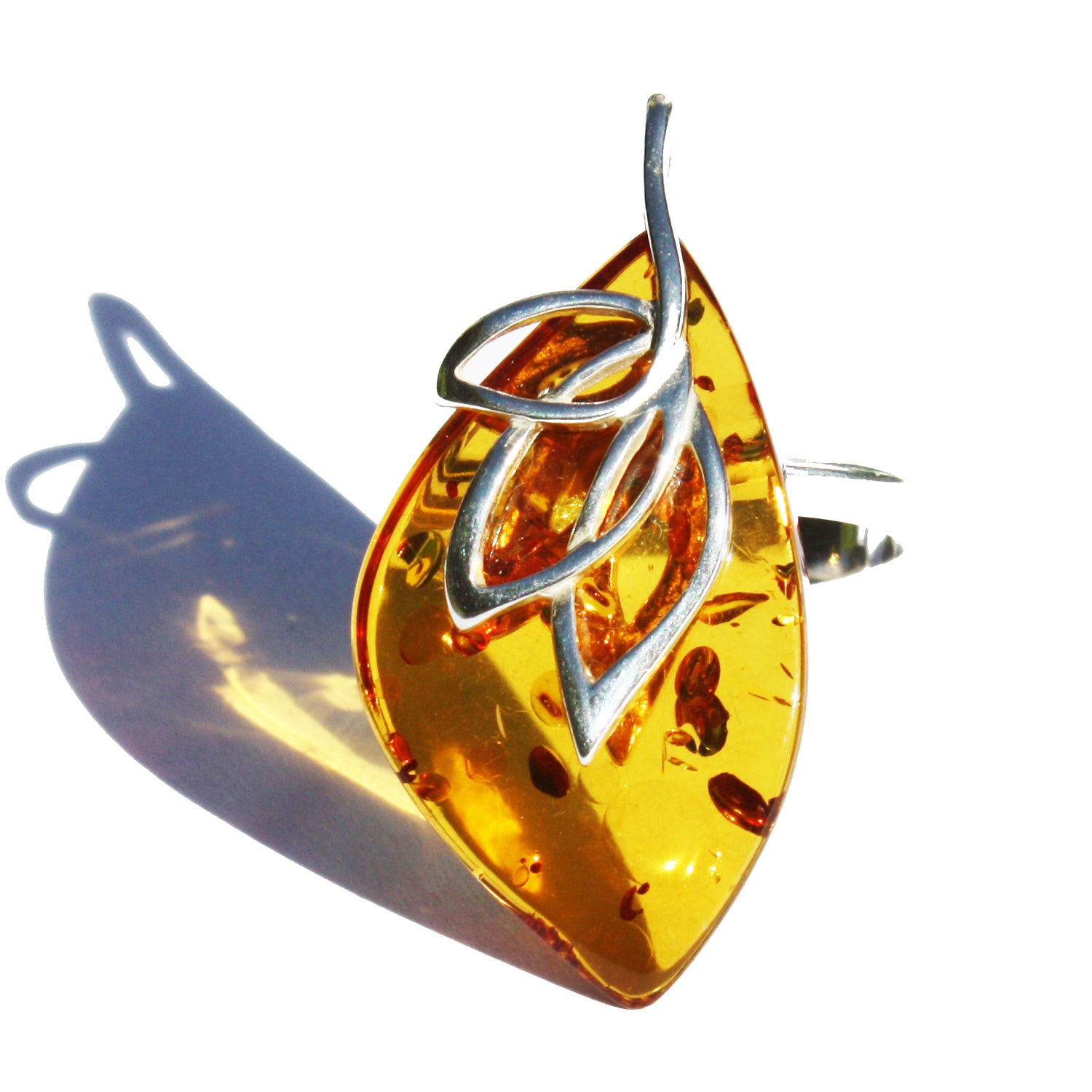 Intricate designer honey amber ring crafted from sterling silver 925 and genuine baltic amber. A distinctive and striking pair of rings. Adjustable Size.