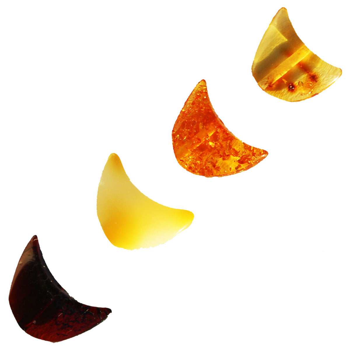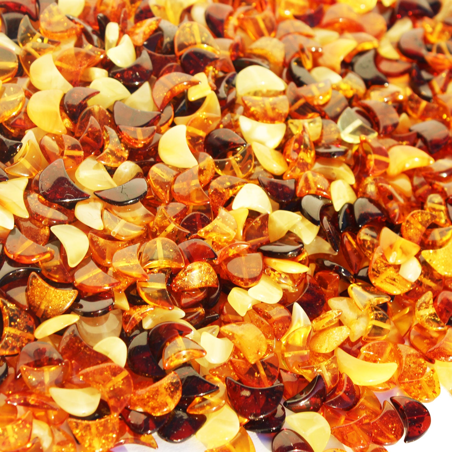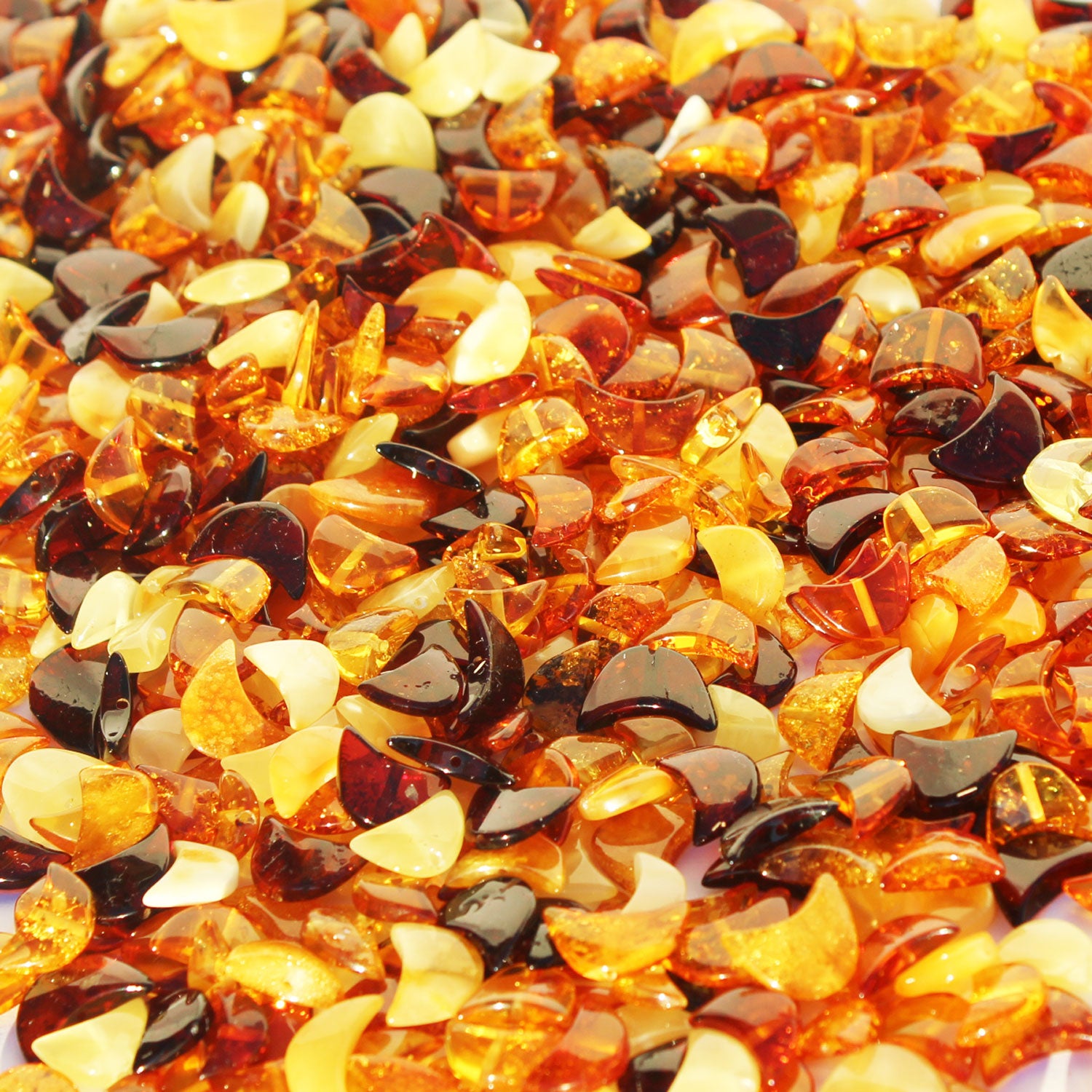Multicolour Polished Moon Baltic Amber Beads with holes.