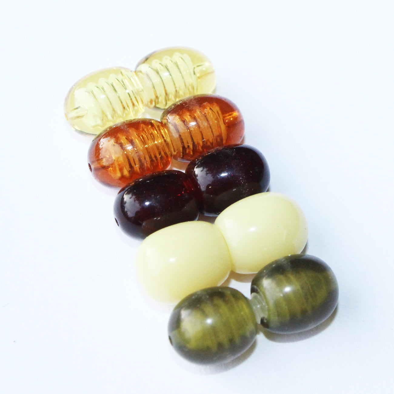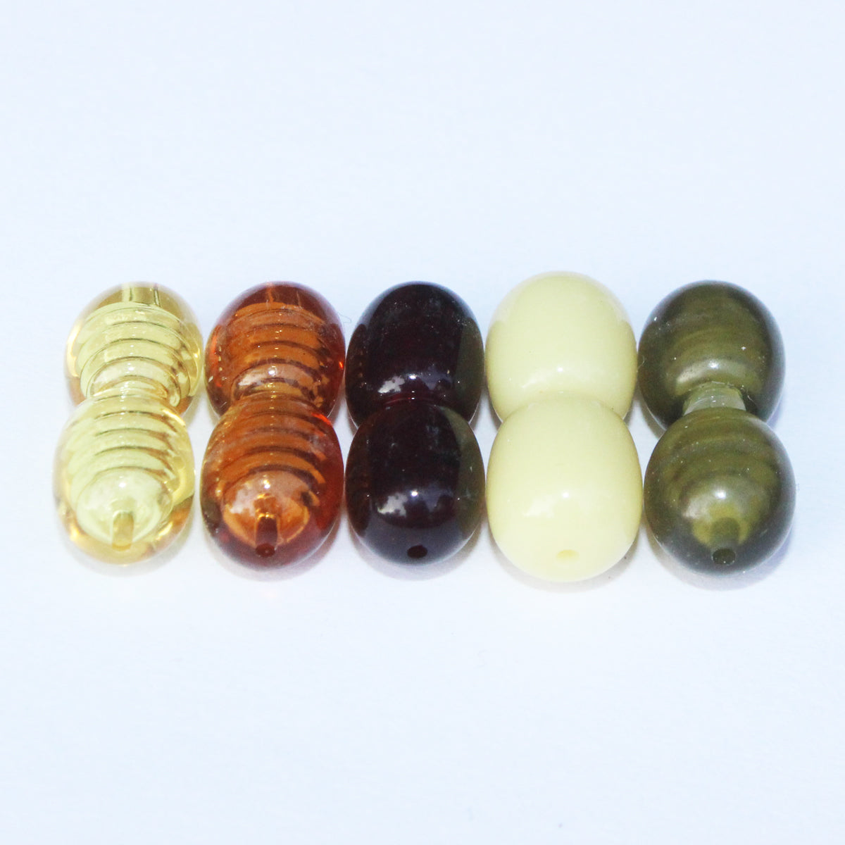 Available polished colours: lemon, honey, cherry, butterscotch, grey-green