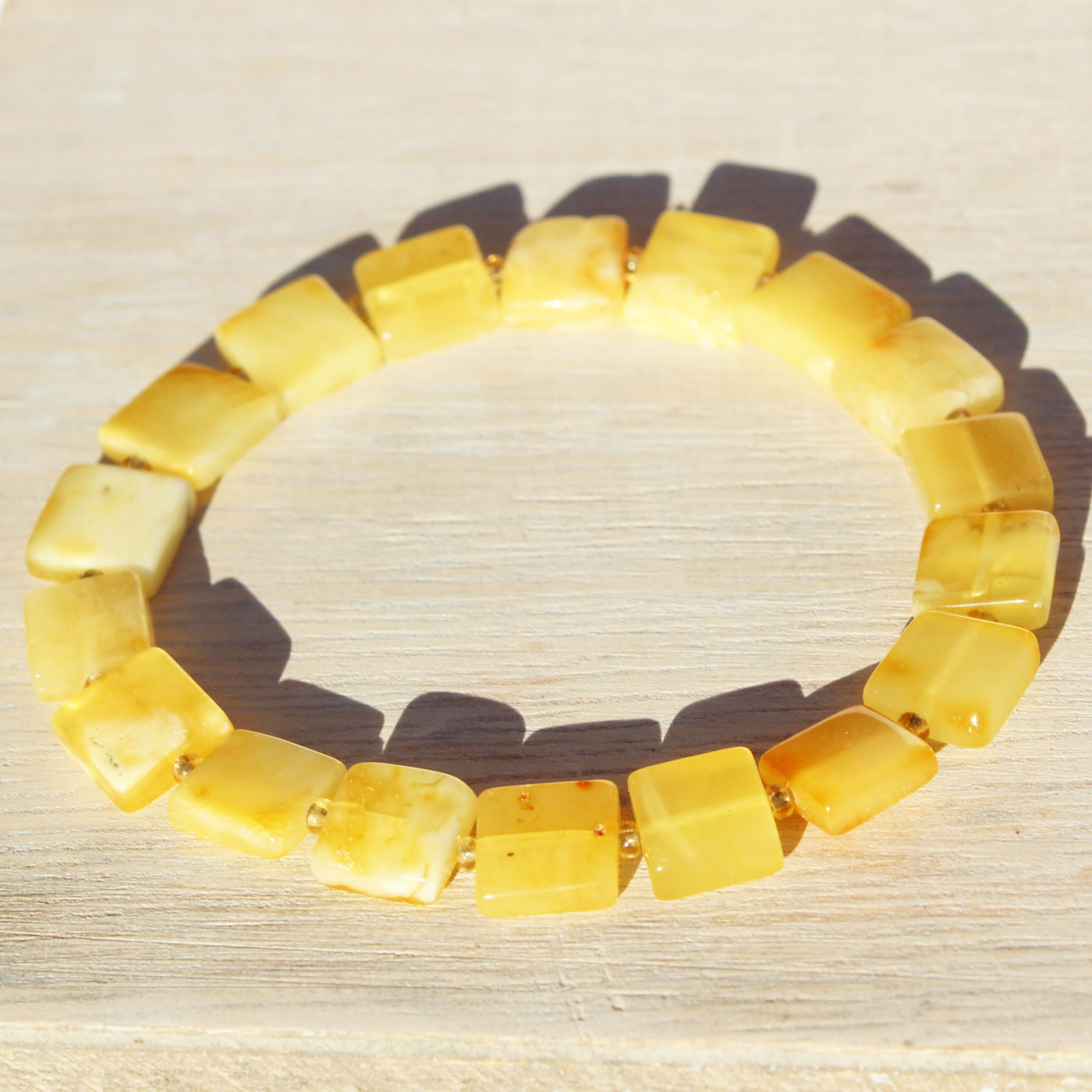 Baltic Amber Square Bracelets. One elastic strings expand to fit all wrists. Comes with lovely gift boxes. available in 5 colours