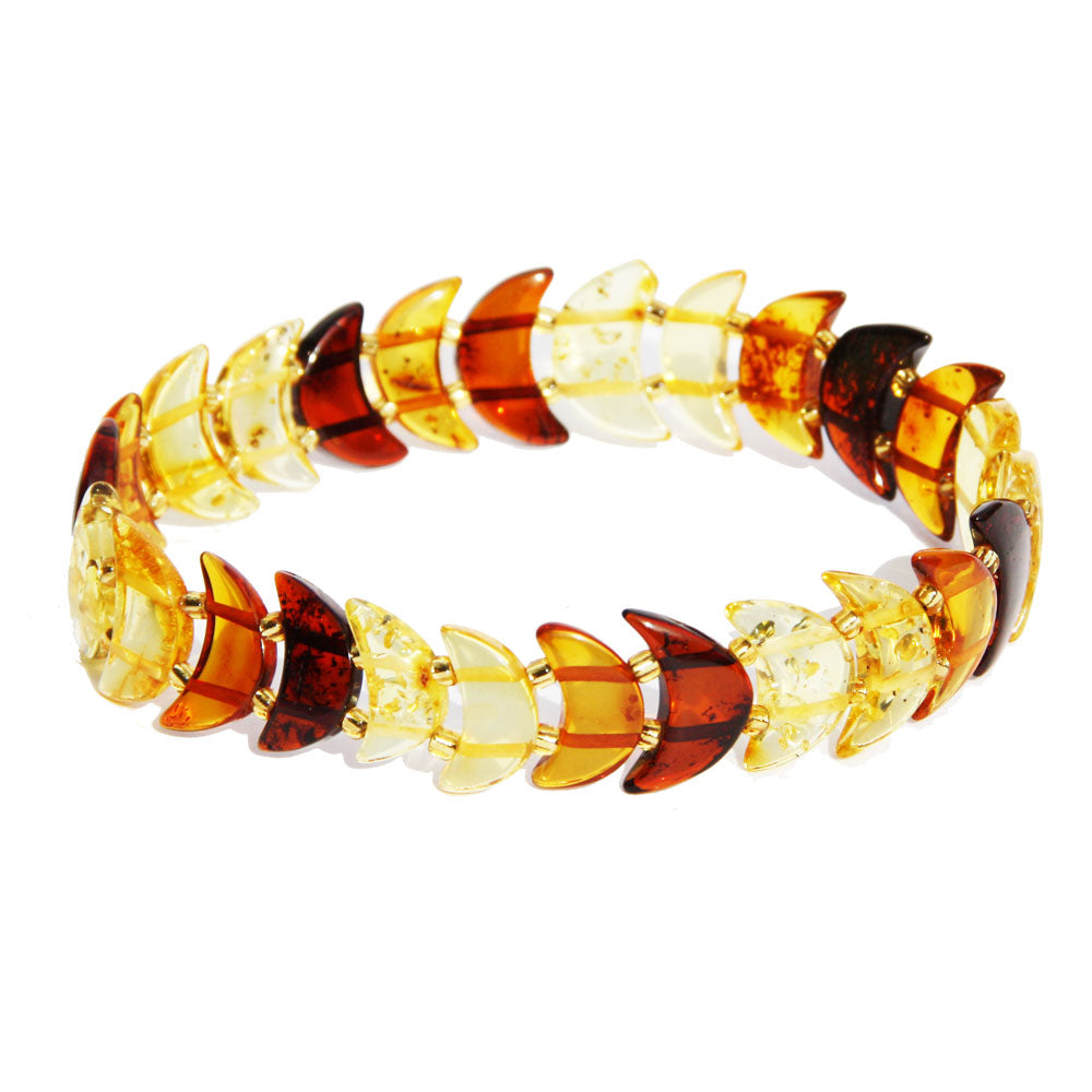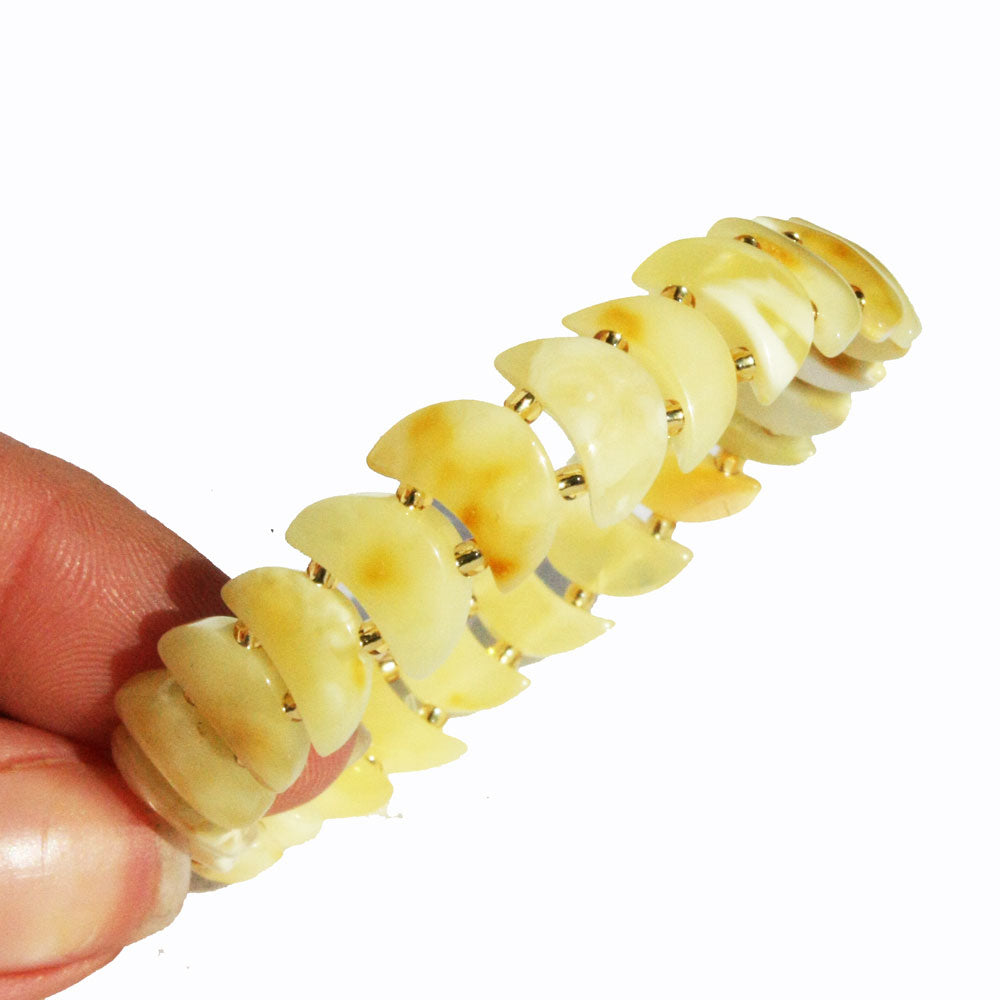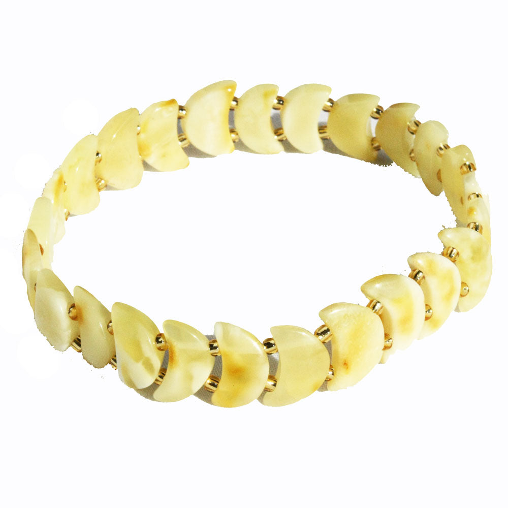 Baltic Amber Moon Bracelet, stretch to fit wrists of all sizes.