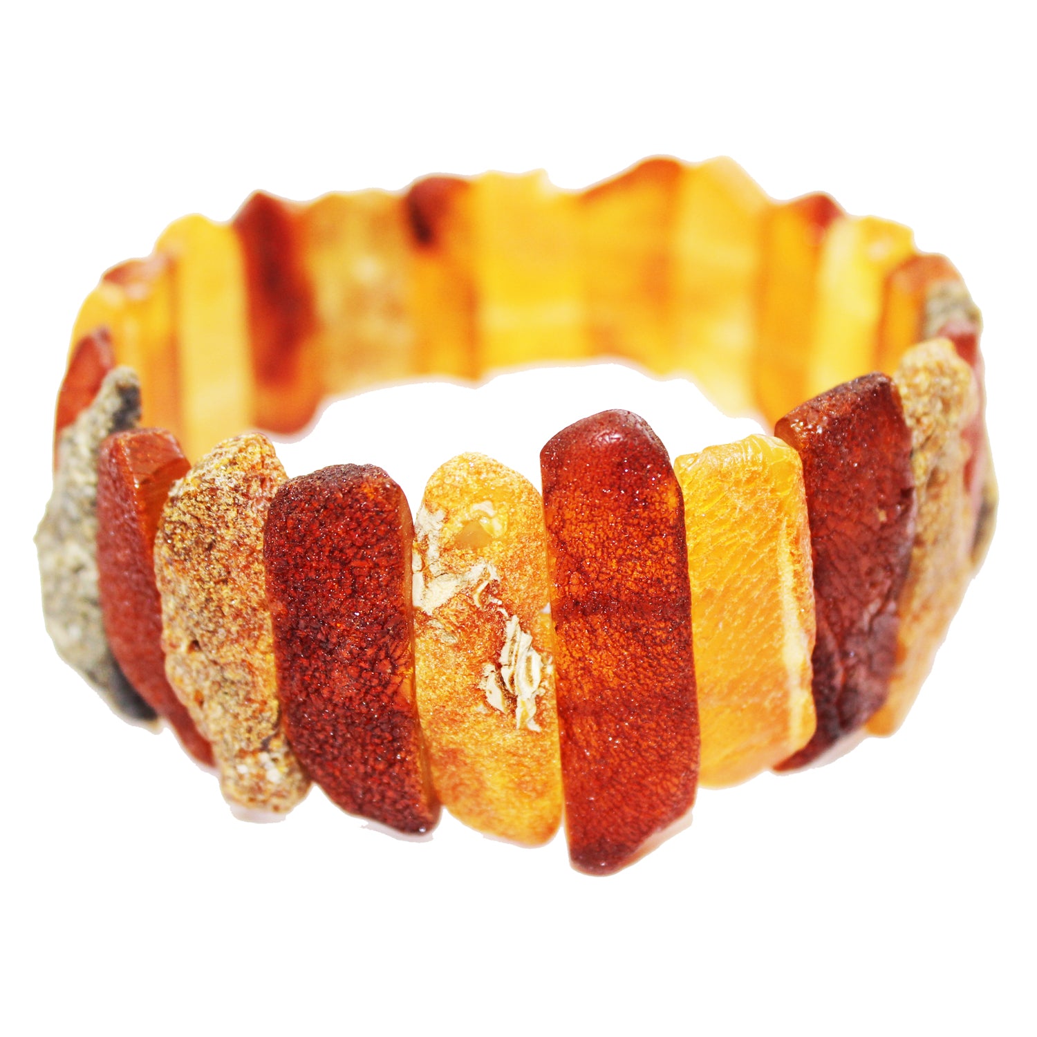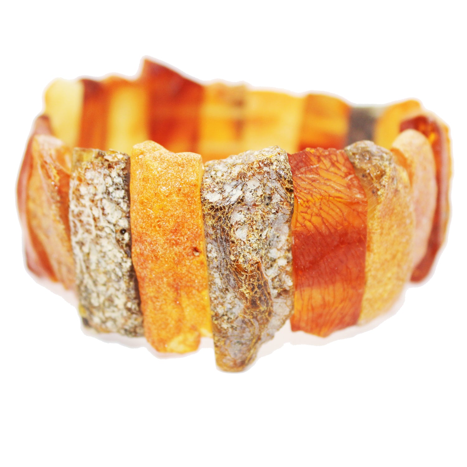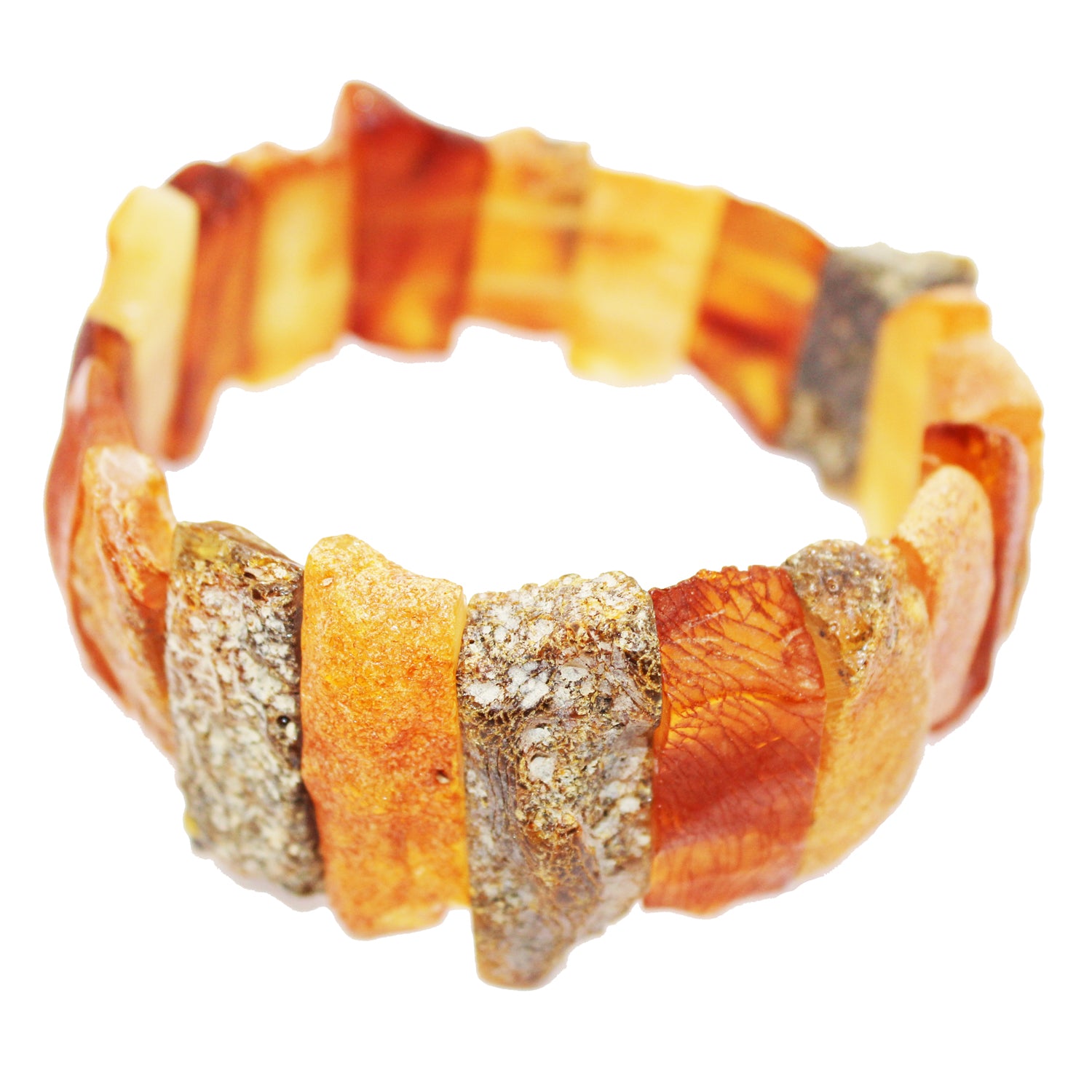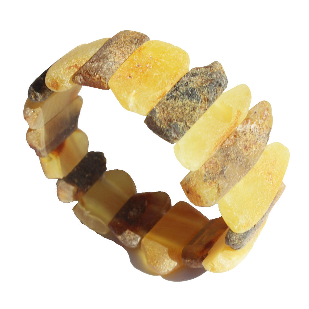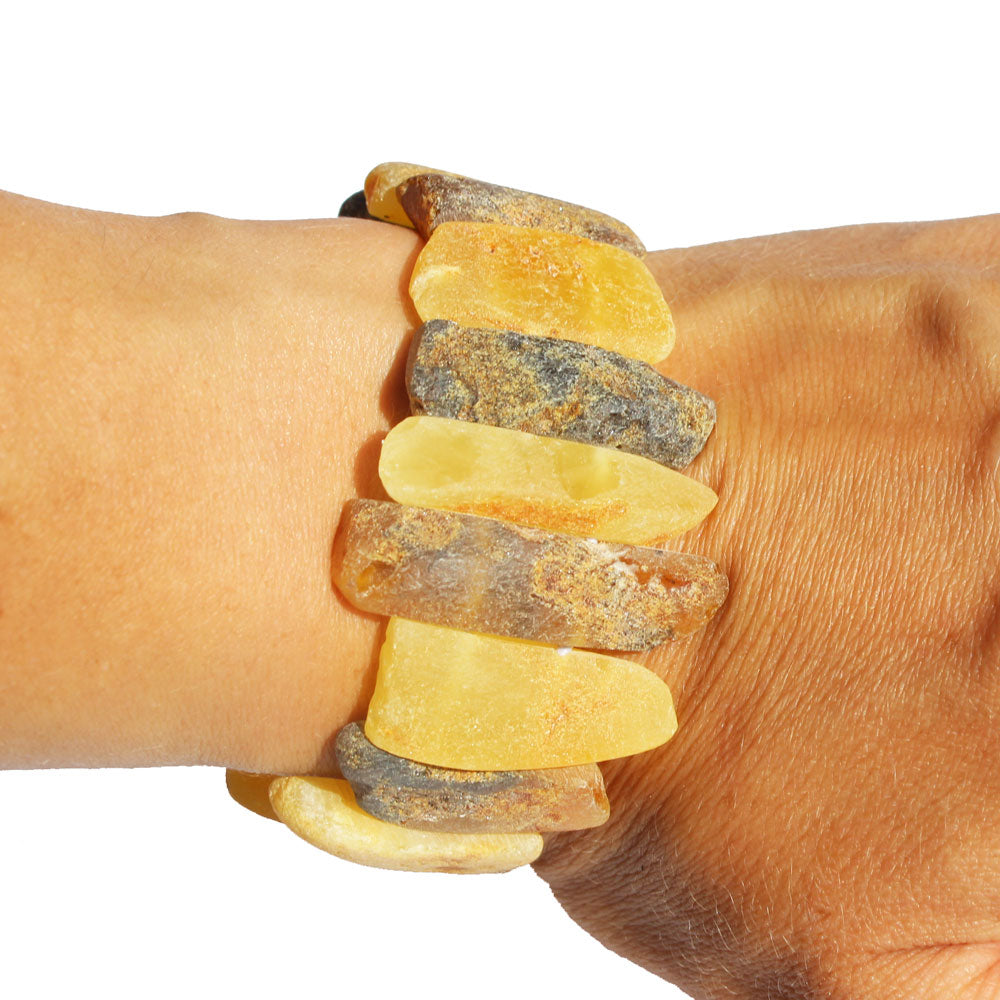 Raw natural handcrafted Baltic amber bracelet/bangle 'DRAMA' made of unpolished amber beads. Two elastic strings expand to fit all wrists.