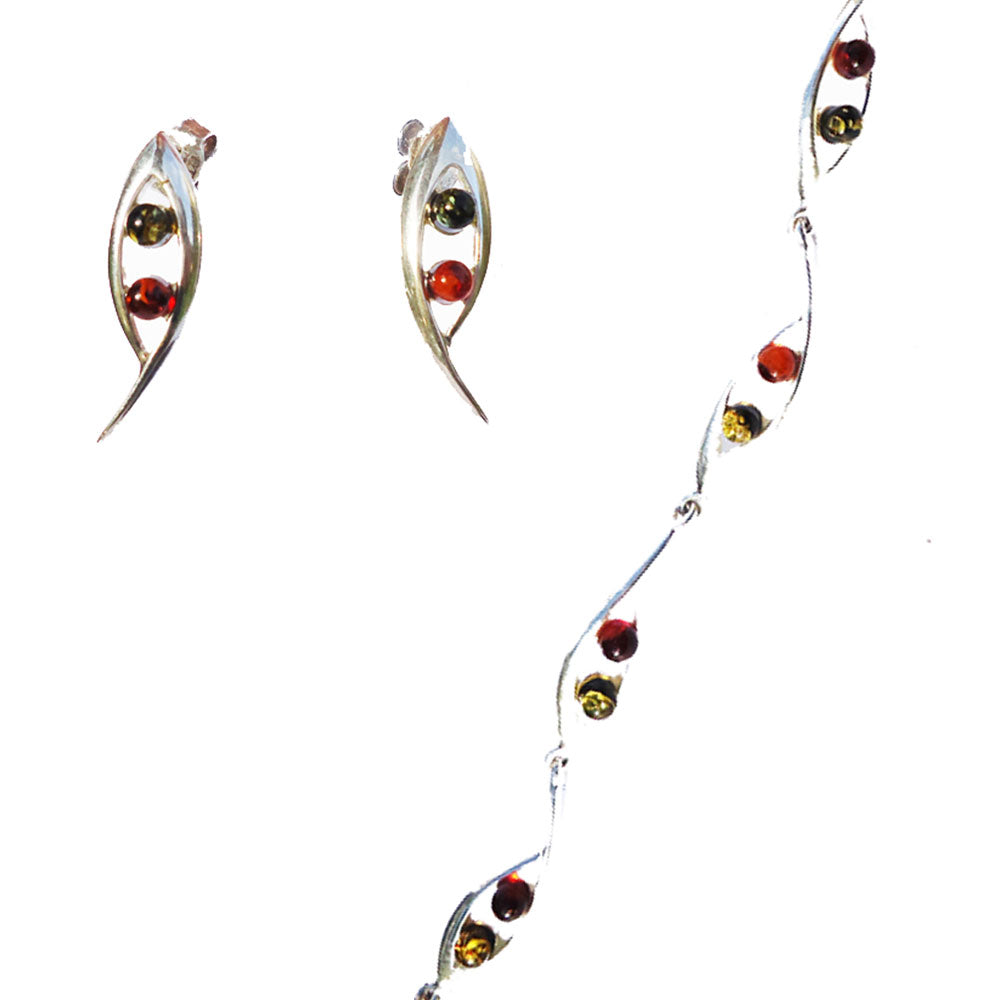 Delicate sterling silver 925 fittings and small round multicolour baltic amber bracelet. Amber is smoothly polished to show off the natural content and shine. Also we are very pleased to be able to offer the matching necklace-pendant or earrings.