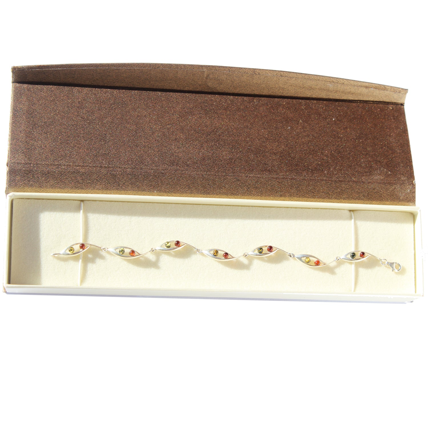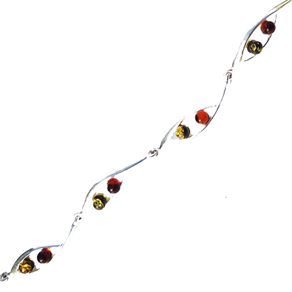 Delicate sterling silver 925 fittings and small round multicolour baltic amber bracelet. Amber is smoothly polished. amber silver bracelet