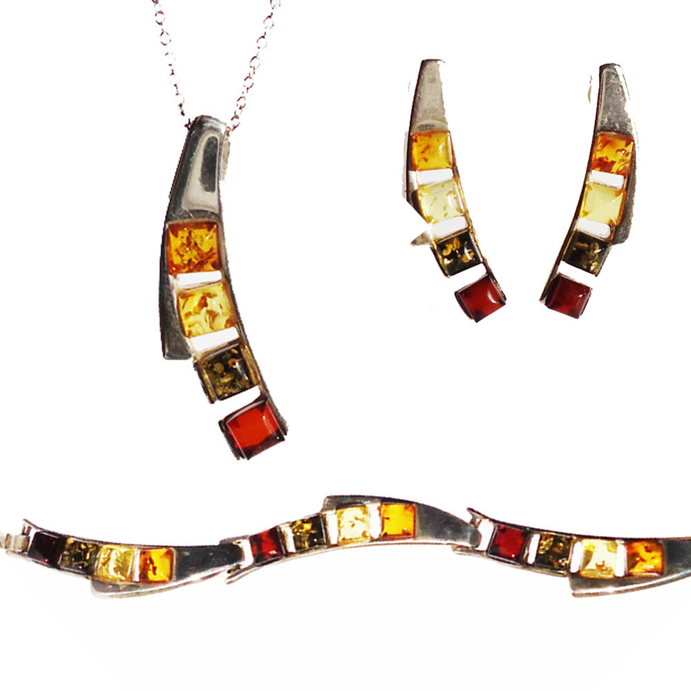 Eye-catching sterling silver 925 fittings and small square multicolour baltic amber bracelet. Amber is smoothly polished to show off the natural content and shine. Also we are very pleased to be able to offer the matching necklace-pendant or earrings.