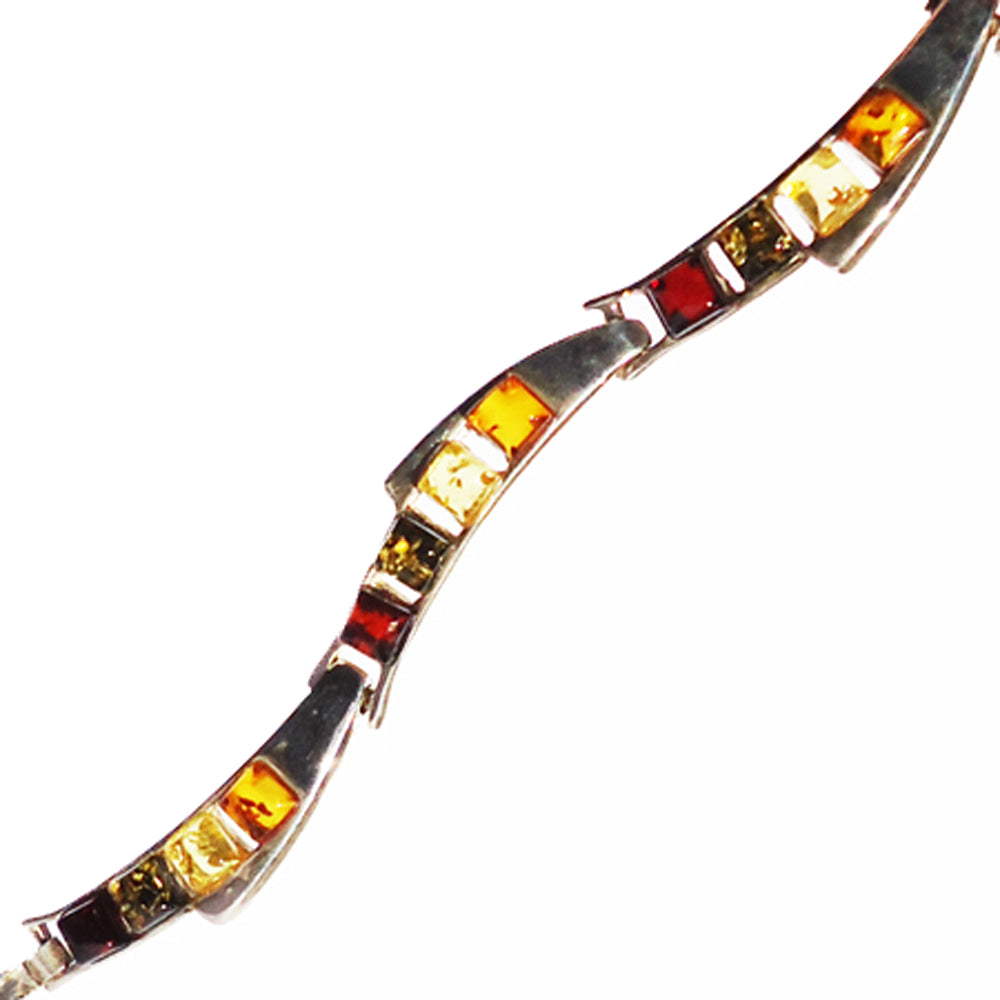 Eye-catching sterling silver 925 fittings and small square multicolour baltic amber bracelet