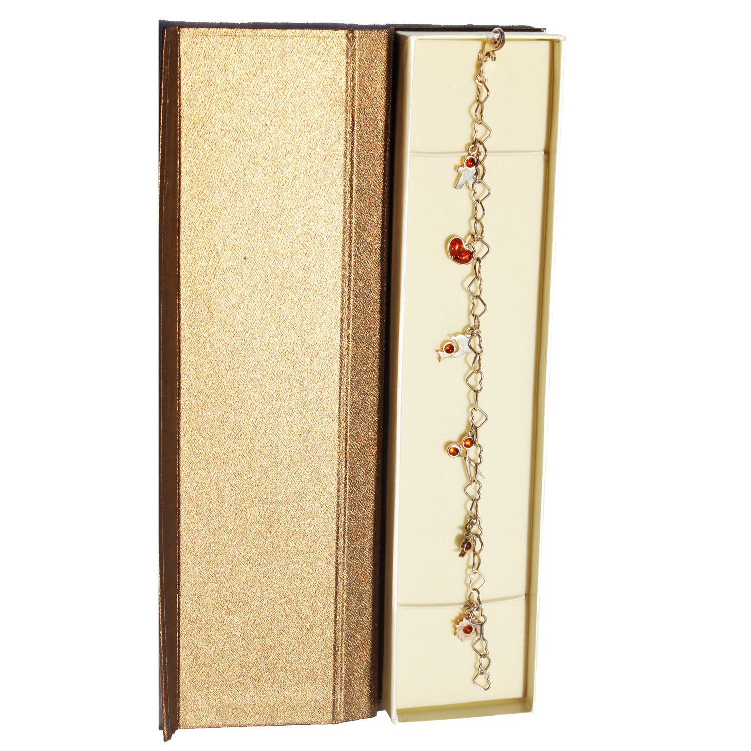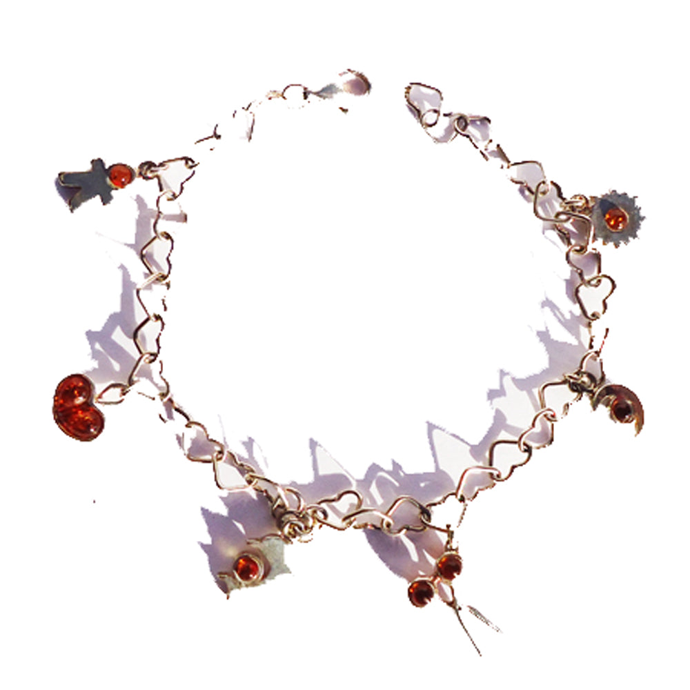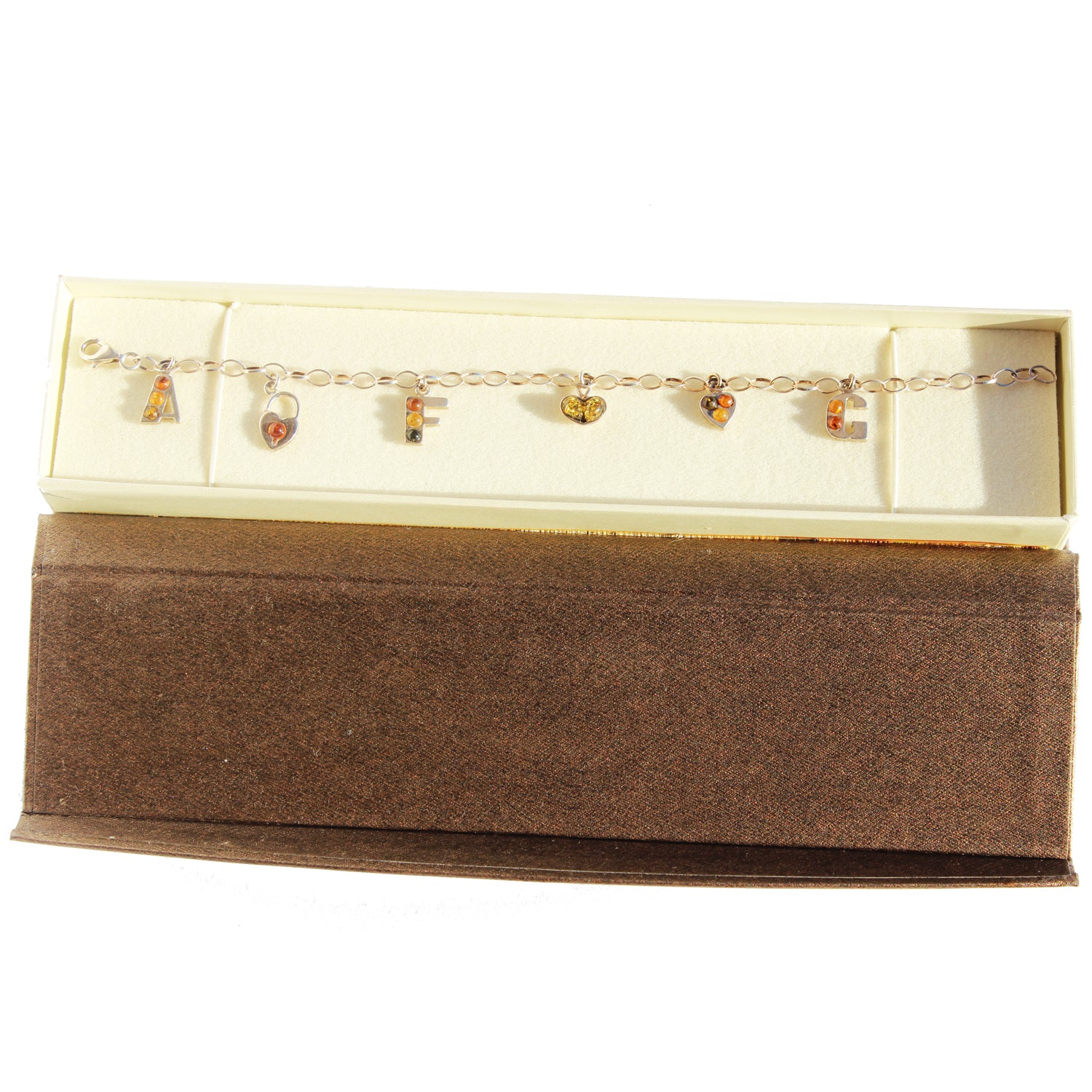 Fancy sterling silver 925 heart chain bracelet and six charming charms with honey baltic amber