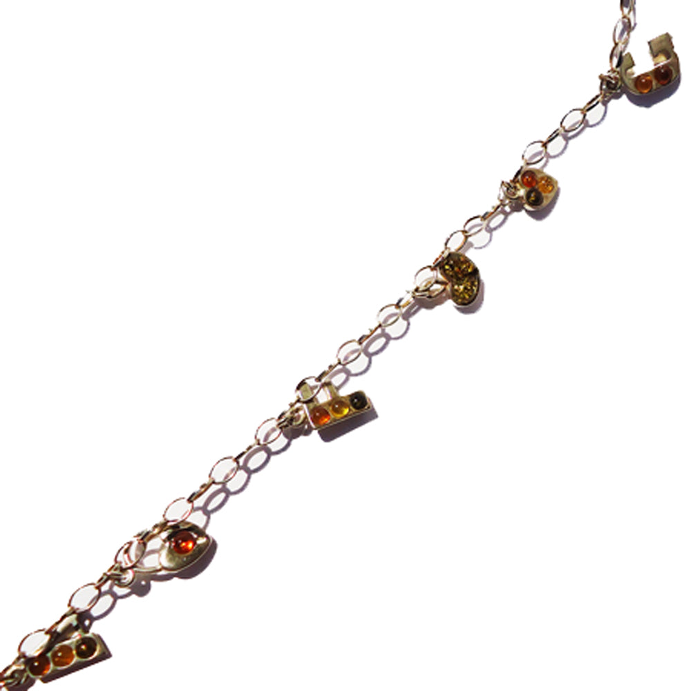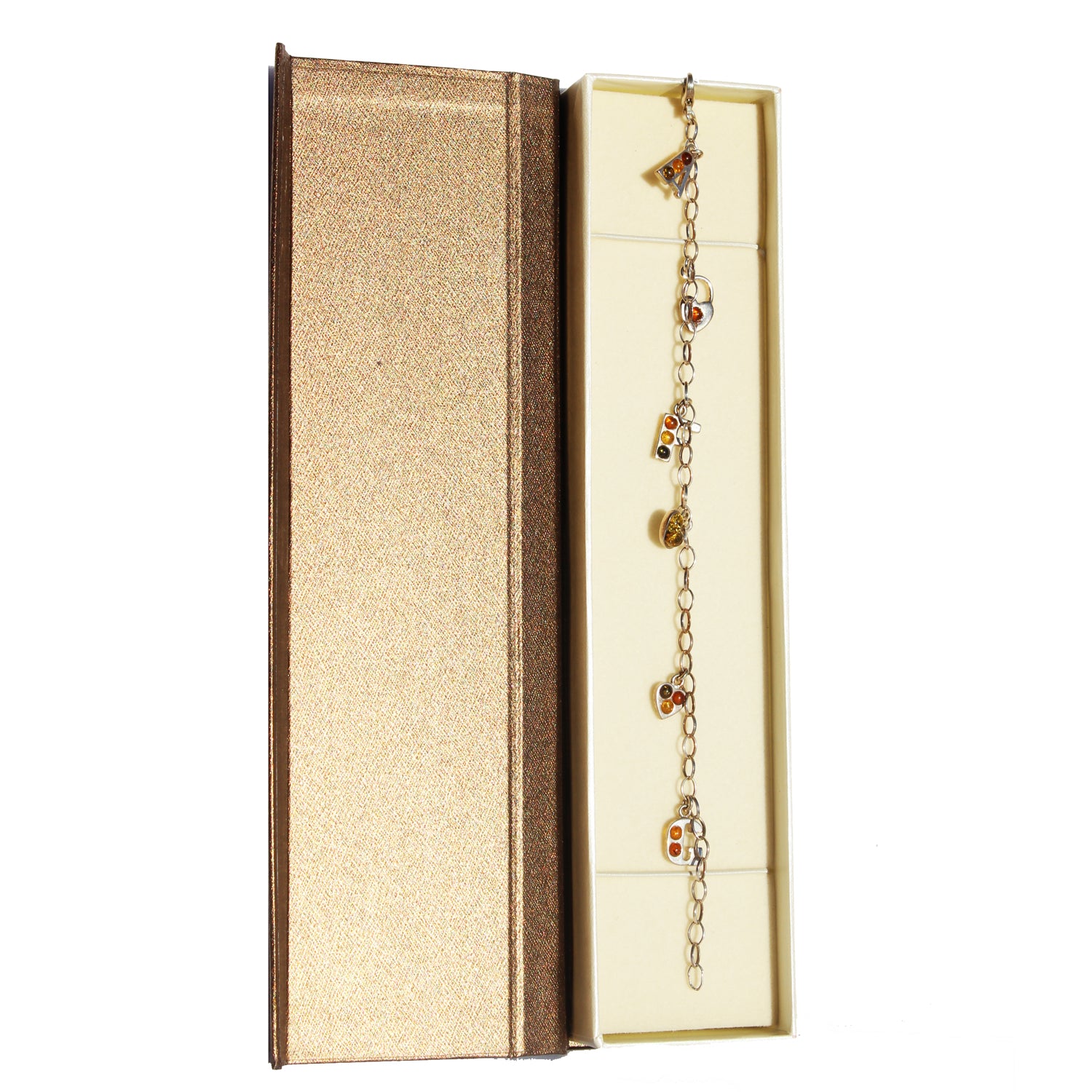 2. Fancy sterling silver 925 chain bracelet and six charming charms with multicolour Baltic amber. Unique gift for your loved one. Amber is smoothly polished to show off the natural content and shine.