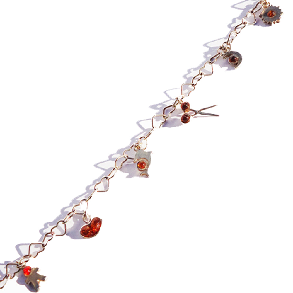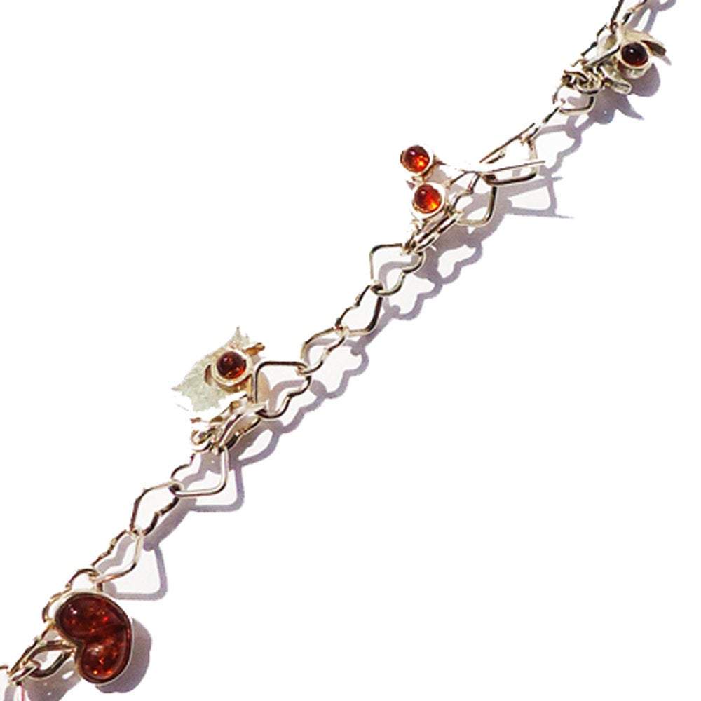 1. Fancy sterling silver 925 heart chain bracelet and six charming charms with honey Baltic amber. Unique gift for your loved one. Amber is smoothly polished to show off the natural content and shine.