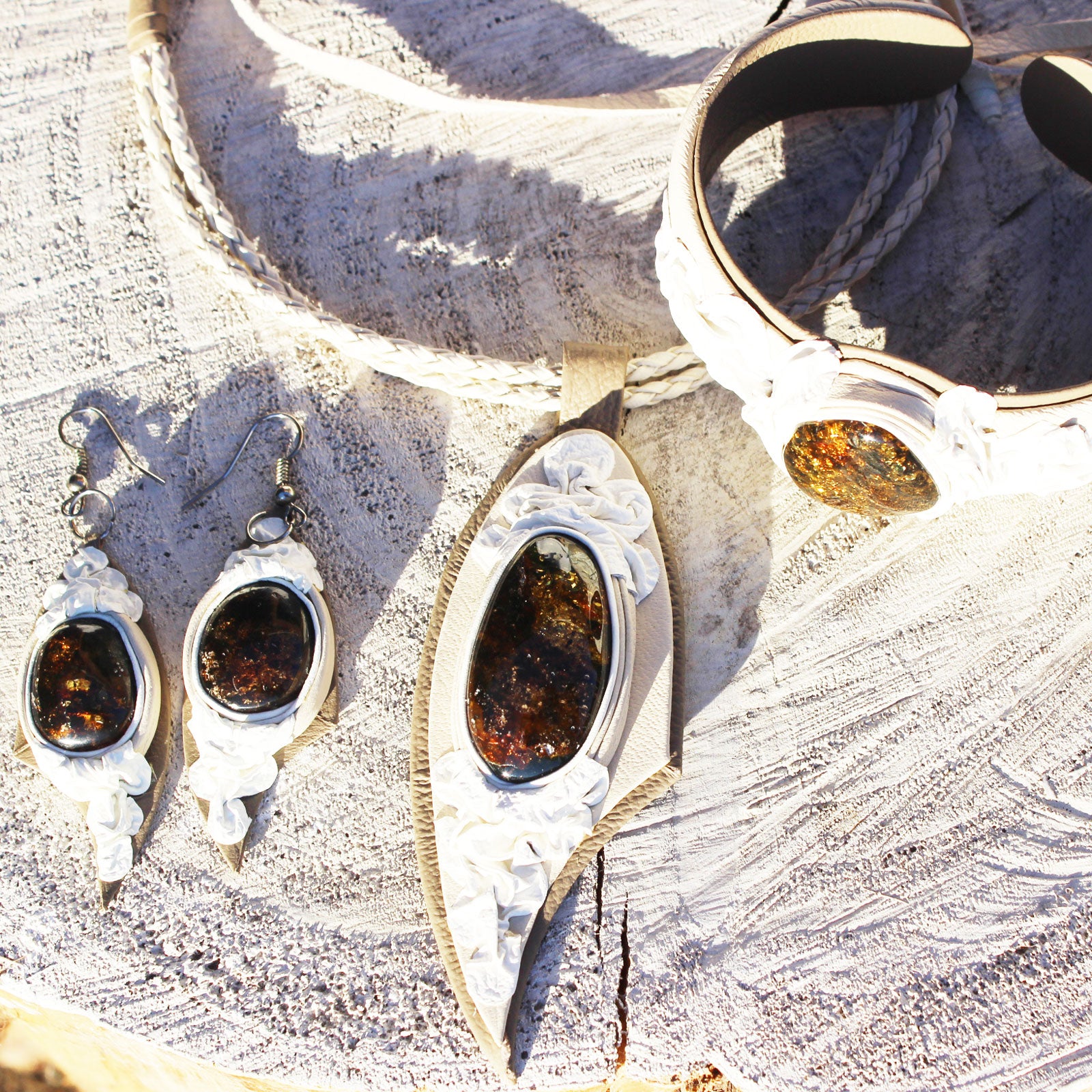 Amber is the ancient resin of trees. The resin has gone through a number of changes over millions of years. Baltic Amber is easy to carve and polish, which makes it a wonderful material to work with. Amber has appeared naturally in various parts of the world, but is well recognized that Baltic Amber is the oldest and most valued of all.